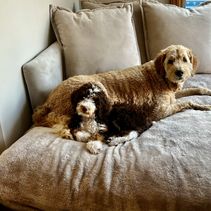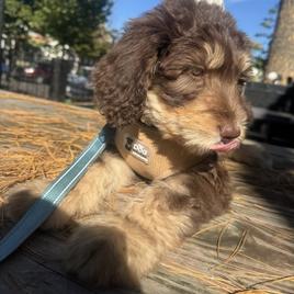 Cowboy is a male Aussiedoodle. Carefully selected as a great representative of his breed, Hilary decided to make him part of their program. Hilary has passed Good Dog’s screening process, which involved a review of their breeding practices, environment, and the mental and physical health of their dogs.