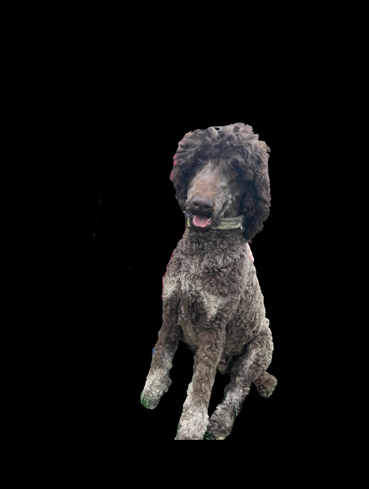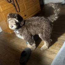 Drew is a beautiful f1 aussiedoodle born to two of our past dogs Ira ,standard poodle, and Banjo ,standard Australian shepherd. Drew has a calm demeanor, great focus and strong willingness to please. Her build is stocky and stout like the Australian shepherd. She stands at 48 inches at the shoulder and weighs 55lbs.