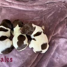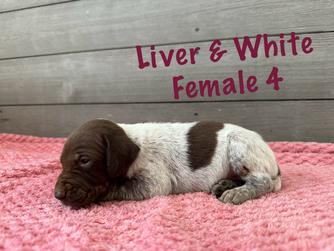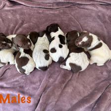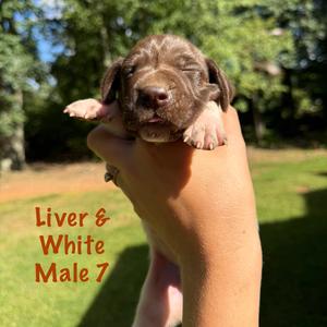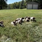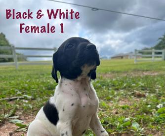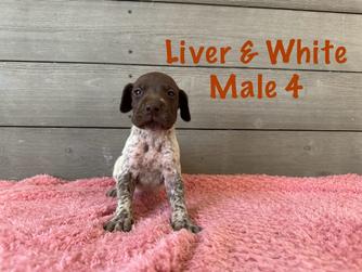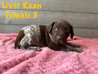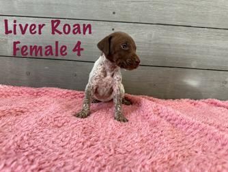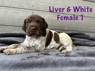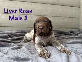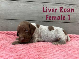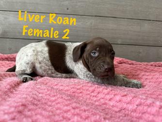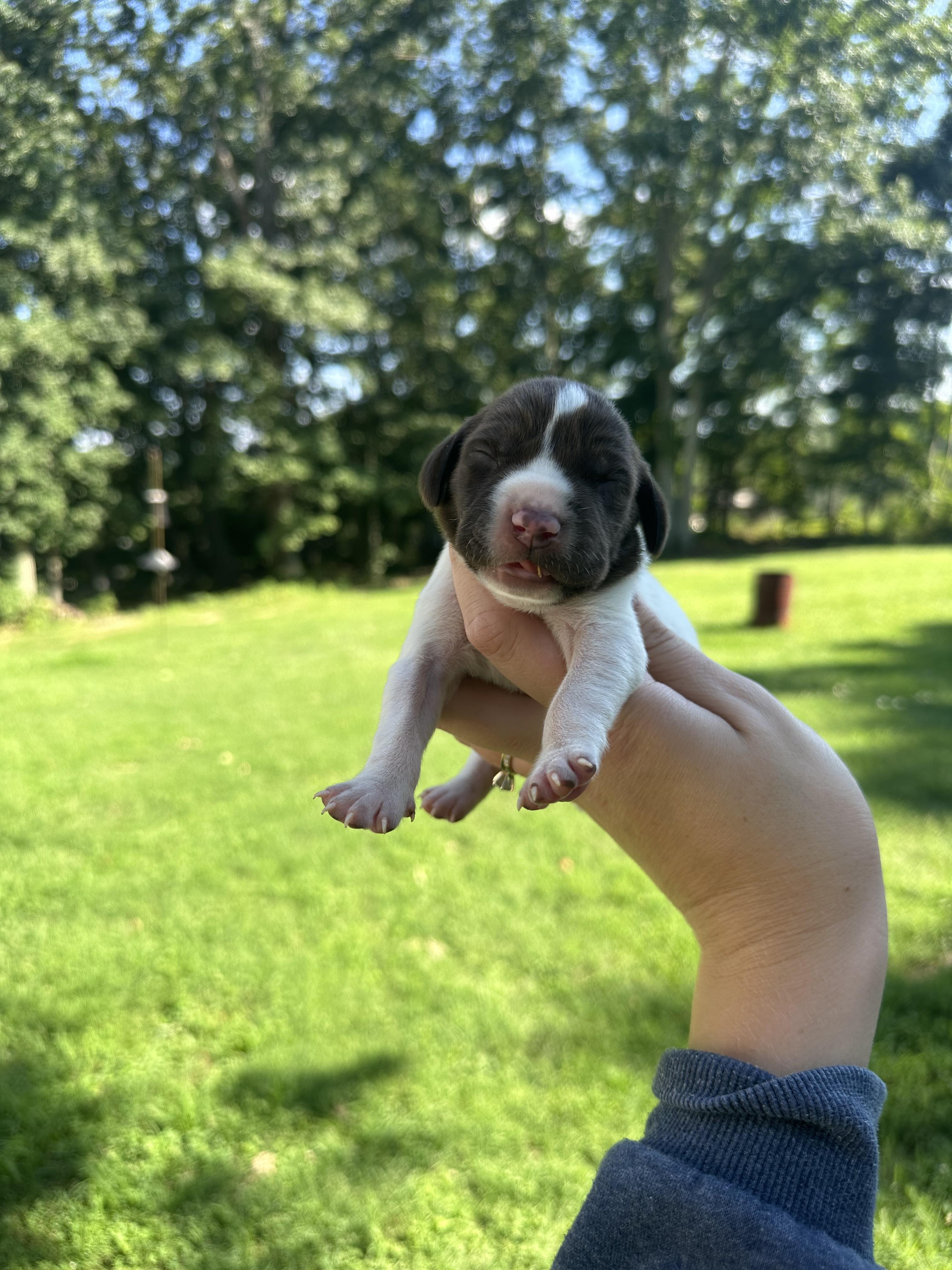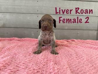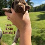 Our puppies include liver roan, white and liver, liver and white, black roan, and black and white. Colors will vary depending on the parent dogs.
