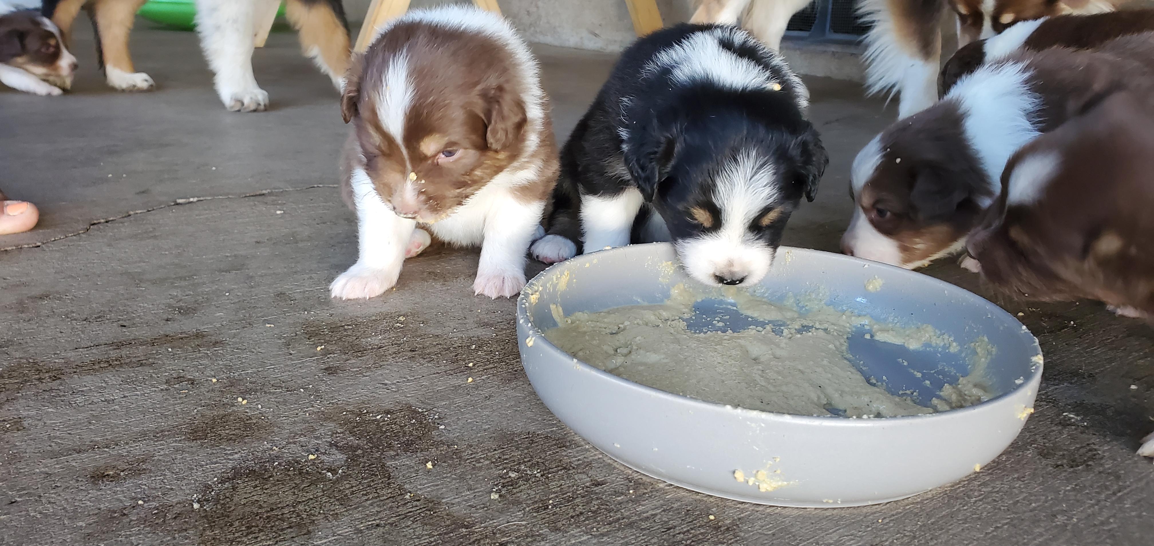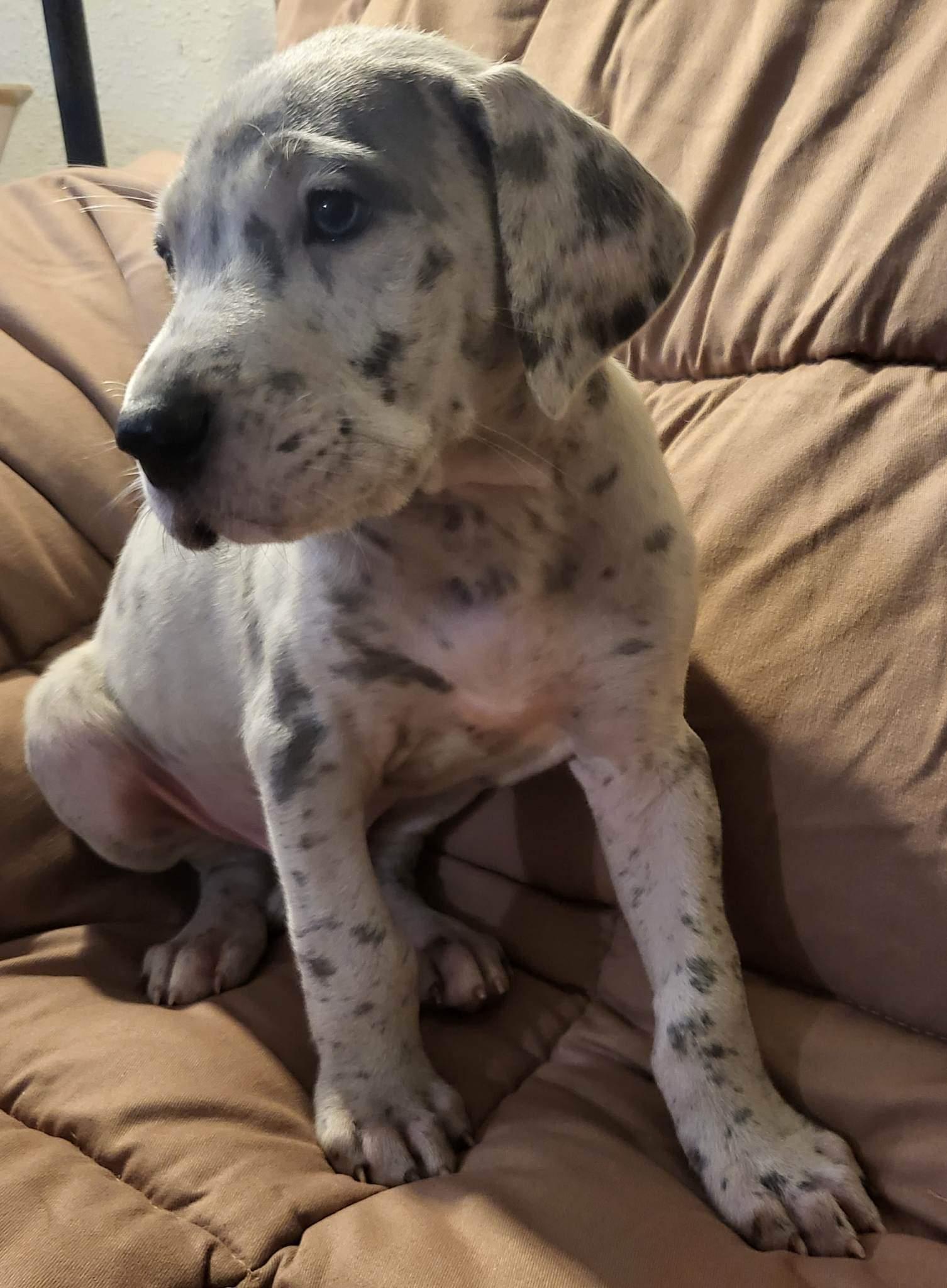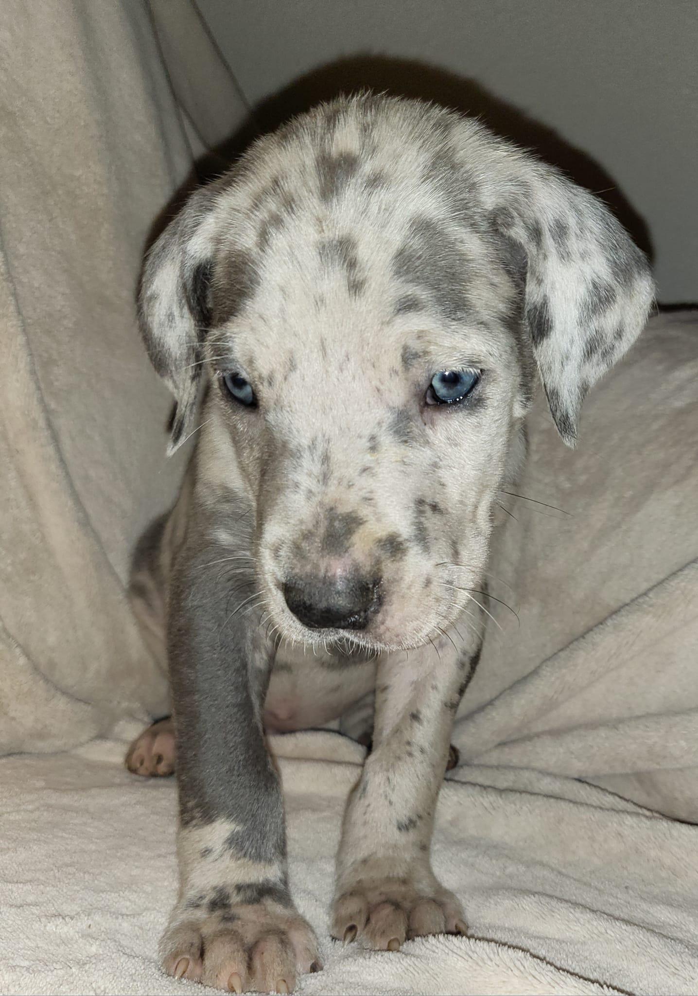 Our Great Dane puppies include mantle merle, black and white, blue and white, fawn, blue, harlequin, mantle, merle, and black. Australian Shepherd puppies include red merle, blue merle, black tri-color, and red tri-color. Colors will vary depending on the parent dogs.