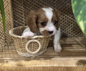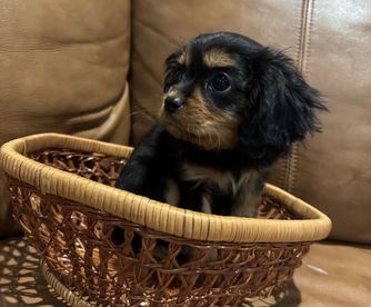 Our puppies include blenheim, ruby, tri-color, and black and tan. Colors will vary depending on the parent dogs.