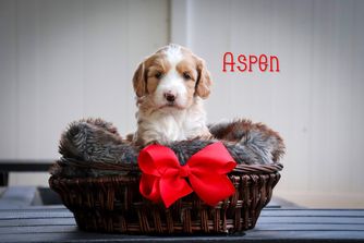 Aspen is a female Australian Labradoodle. Carefully selected as a great representative of her breed, Max & Cindy decided to make her part of their program. Max & Cindy has passed Good Dog’s screening process, which involved a review of their breeding practices, environment, and the mental and physical health of their dogs.