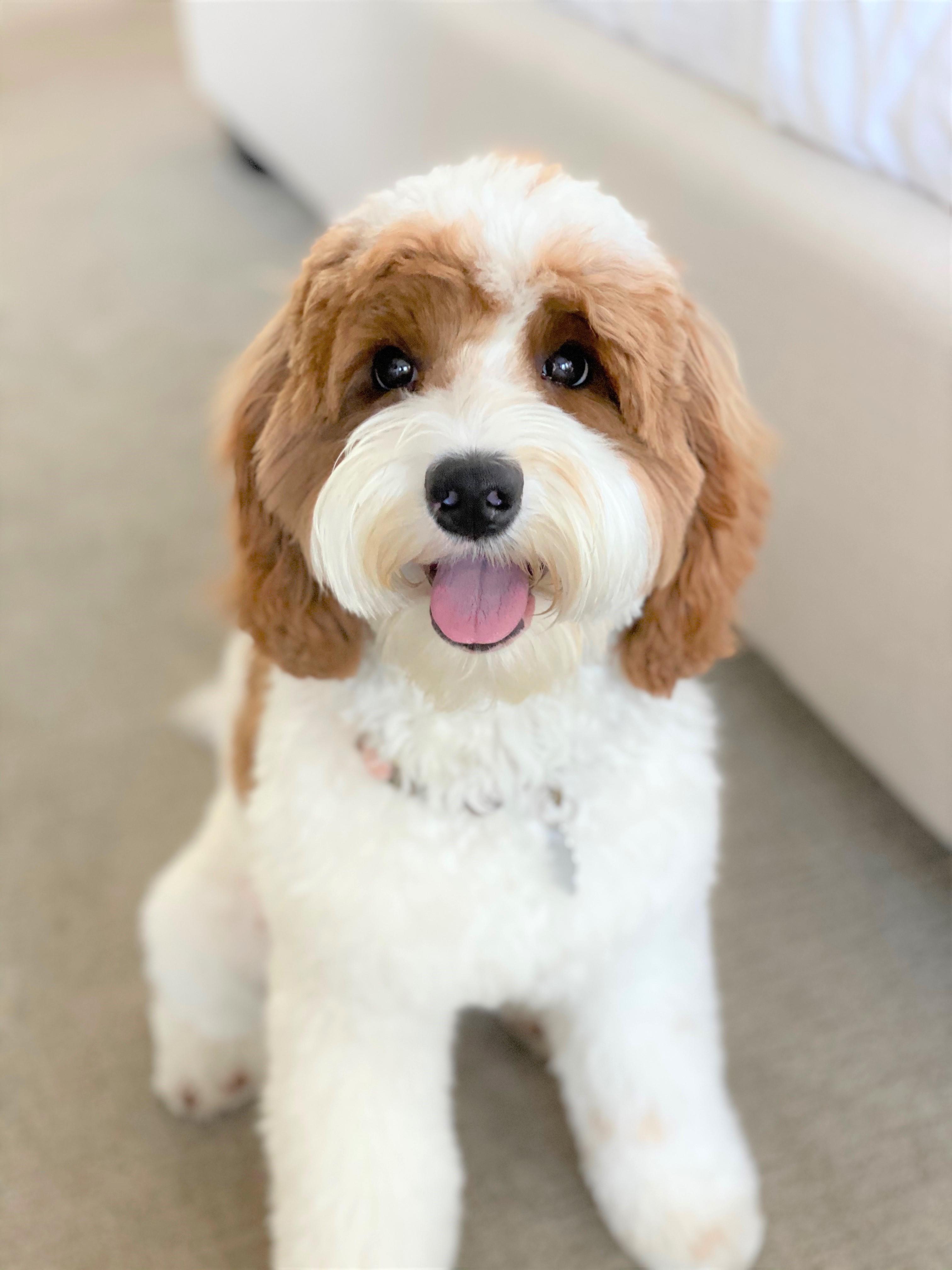 Hinkley is a male Australian Labradoodle. Carefully selected as a great representative of his breed, Max & Cindy decided to make him part of their program. Max & Cindy has passed Good Dog’s screening process, which involved a review of their breeding practices, environment, and the mental and physical health of their dogs.