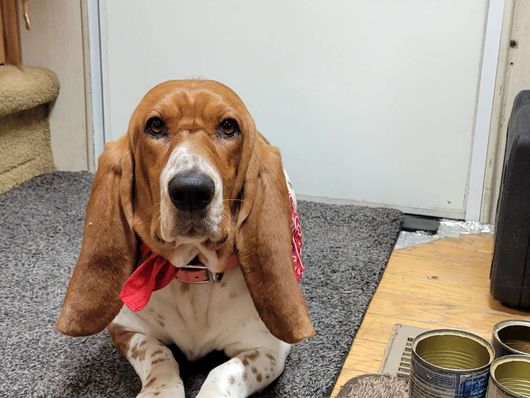 Old Dan is so sweet. He loves all the babies! So gentle with kittens and ducklings and chicks. He loves to go on walks but also loves to cuddle on the couch with his family. His ears are thick and heavy and he has so much extra skin!