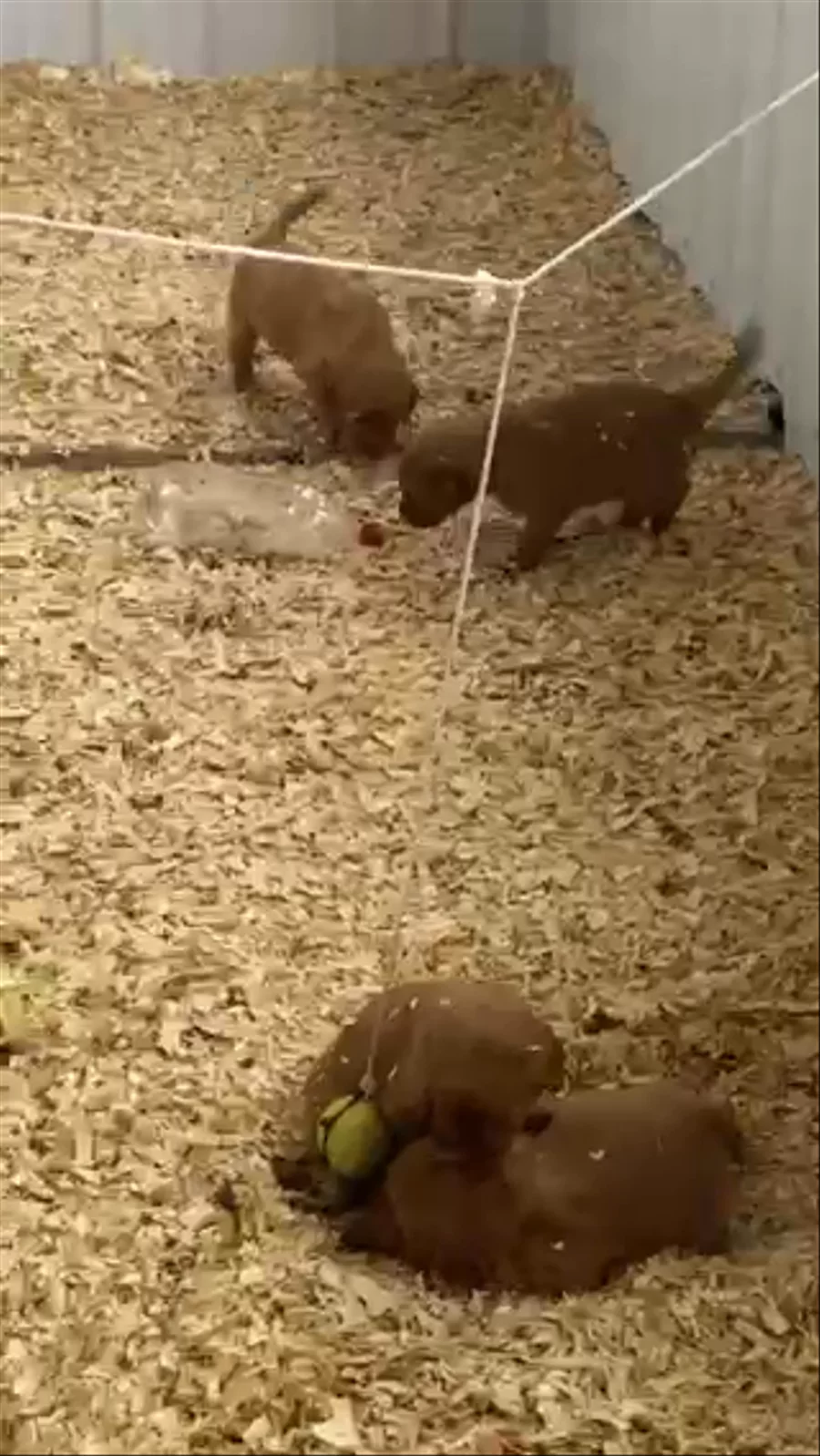 They prefer a couple of pieces of rubber and a couple of hanging tennis balls over $500 worth of puppy toys. I guess they are just country pups.