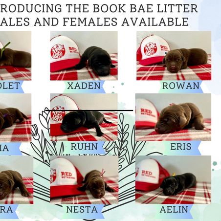 Our puppies include black, chocolate, and yellow. Colors will vary depending on the parent dogs.