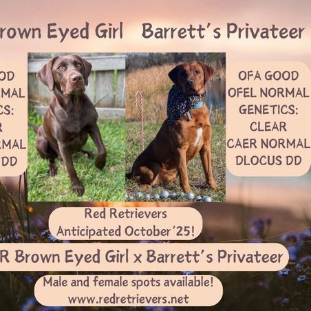 I'm Stacey H., the breeder behind Red Retrievers located in Alvin, TX. We focus on breeding healthy dogs that are perfect for both fieldwork and family life. We only breed non-dilute colors, specifically testing to make sure we do not include dilutes in our program. All our pups will receive their wormings and first round of shots before going off to their new homes.