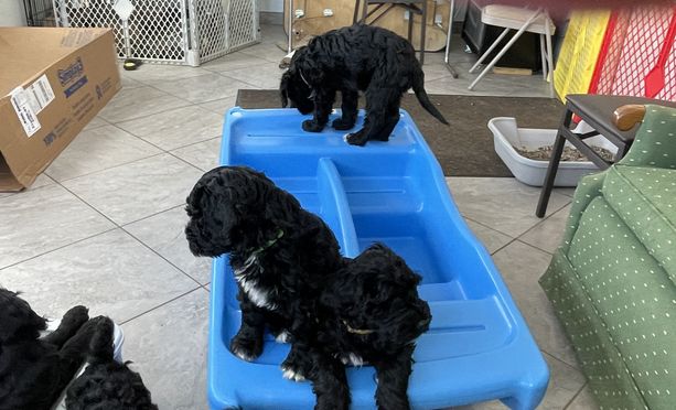 Janet was extremely knowledgeable and easy to communicate with. She was very punctual and made it a priority to provide me with as much information as possible. The dogs’ areas were extremely clean and well kept, and the dogs were well groomed and extremely healthy. Janet most definitely cares about the lives of her dogs after she sends them home, and even provides a shared photo album for owners to upload pictures of their pups throughout their lifetime. She catered to my personal needs tremendously and was willing to hold the dog for me until after I returned from vacation, while also allowing me to visit our pup Harvey multiple times before we picked him up. Harvey has been nothing but a joy since we brought him into our home. He was almost fully house trained the day we brought him home, and is extremely well socialized with people and other dogs. He has bonded with me and is my own personal shadow, following me around the house and yard. I would recommend Janet to anyone looking to bring a Portuguese Water Dog into their home, and would definitely work with her again in the future.