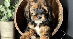 Our Cavapoo puppies include merle, black and tan, tri-color, blenheim, and red. Cockapoo puppies include brown and tan, brown, sable, golden, red, black white and tan, and black. Cocker Spaniel puppies include red and white, red, golden, buff and white, buff, black and white, and black and tan. Goldendoodle puppies include cream, apricot, and red. Colors will vary depending on the parent dogs.