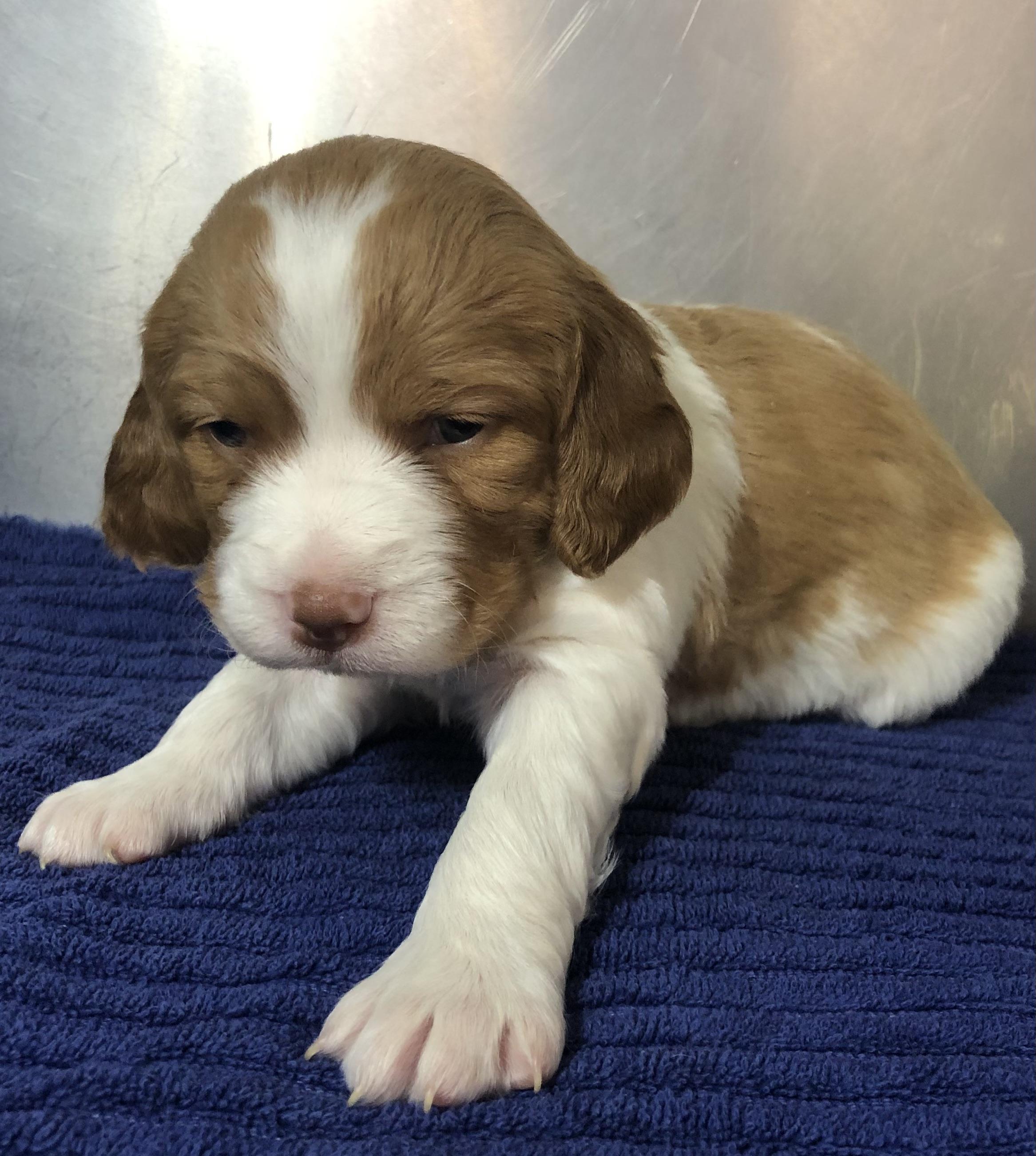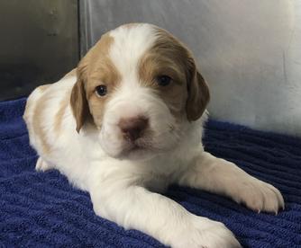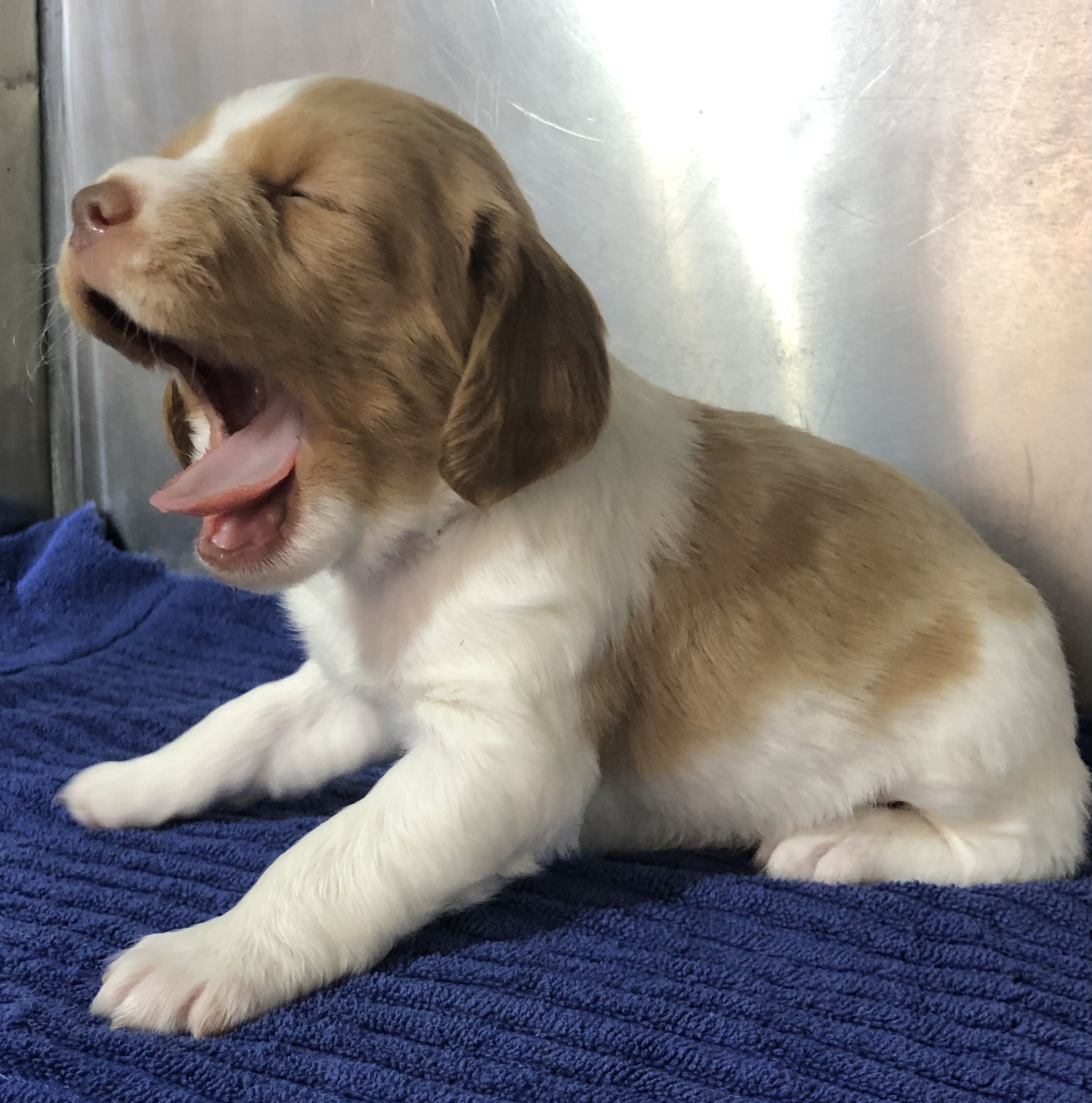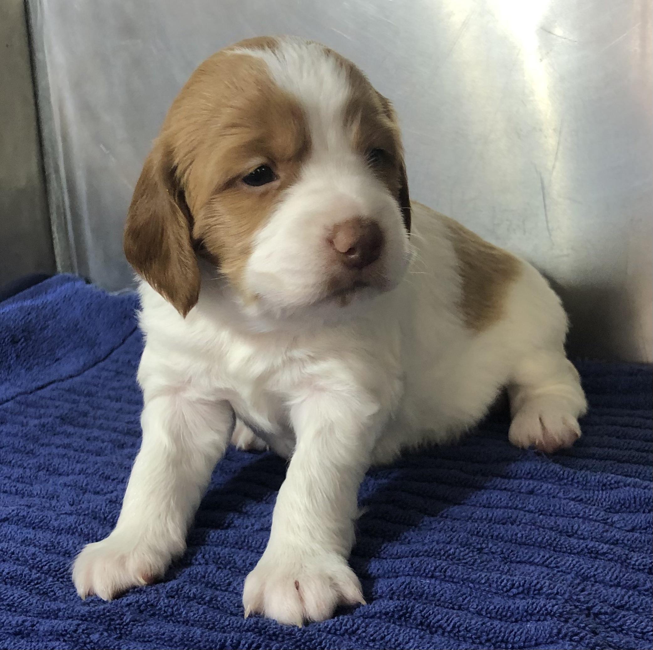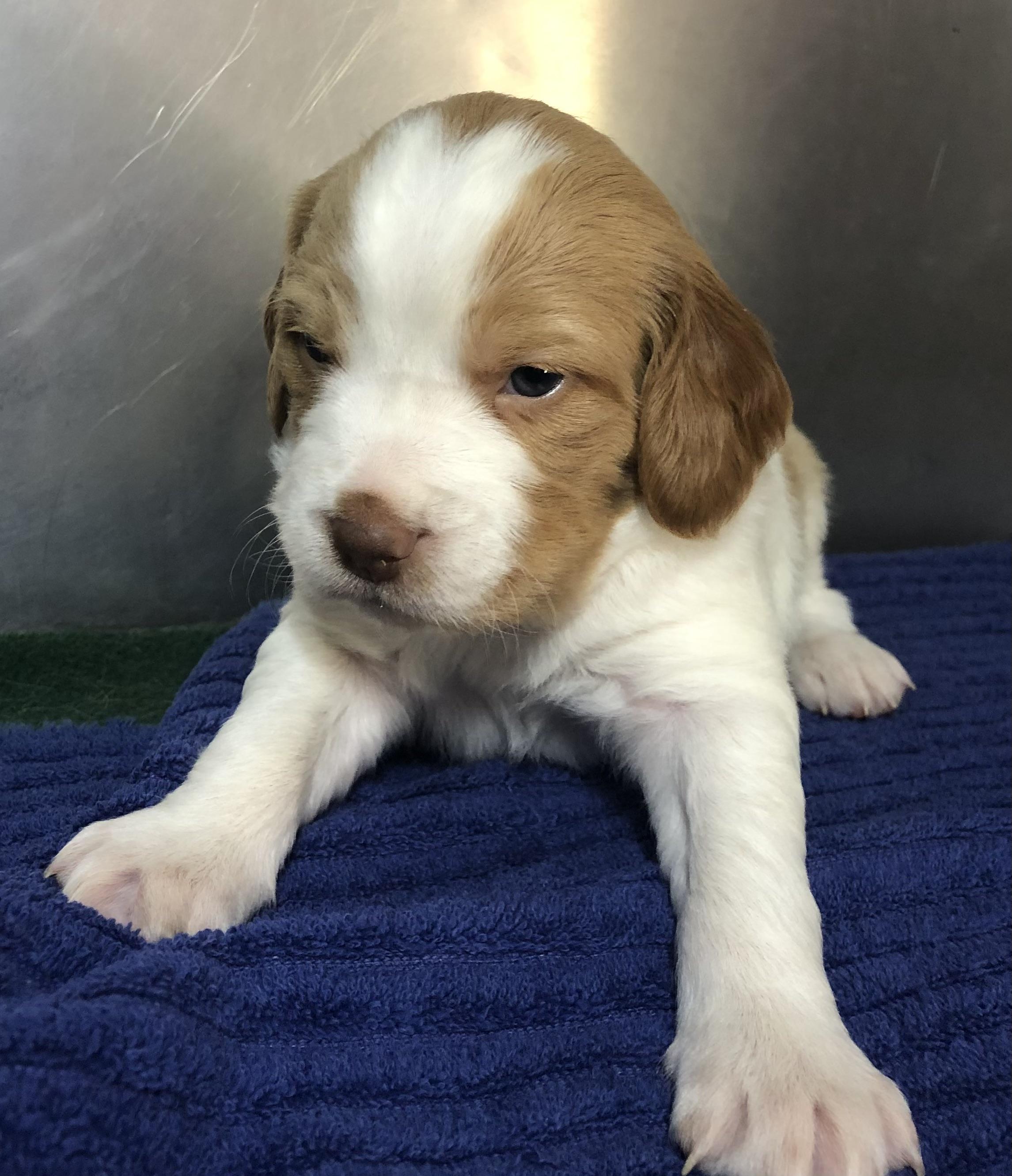 Phoebe is a female Brittany. Carefully selected as a great representative of her breed, John decided to make her part of their program. John has passed Good Dog’s screening process, which involved a review of their breeding practices, environment, and the mental and physical health of their dogs.