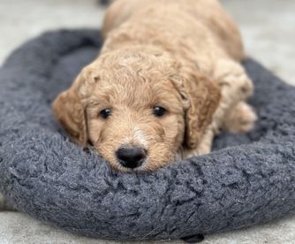 Tucker is a male Goldendoodle. Carefully selected as a great representative of his breed, Hillarie decided to make him part of their program. Hillarie has passed Good Dog’s screening process, which involved a review of their breeding practices, environment, and the mental and physical health of their dogs.