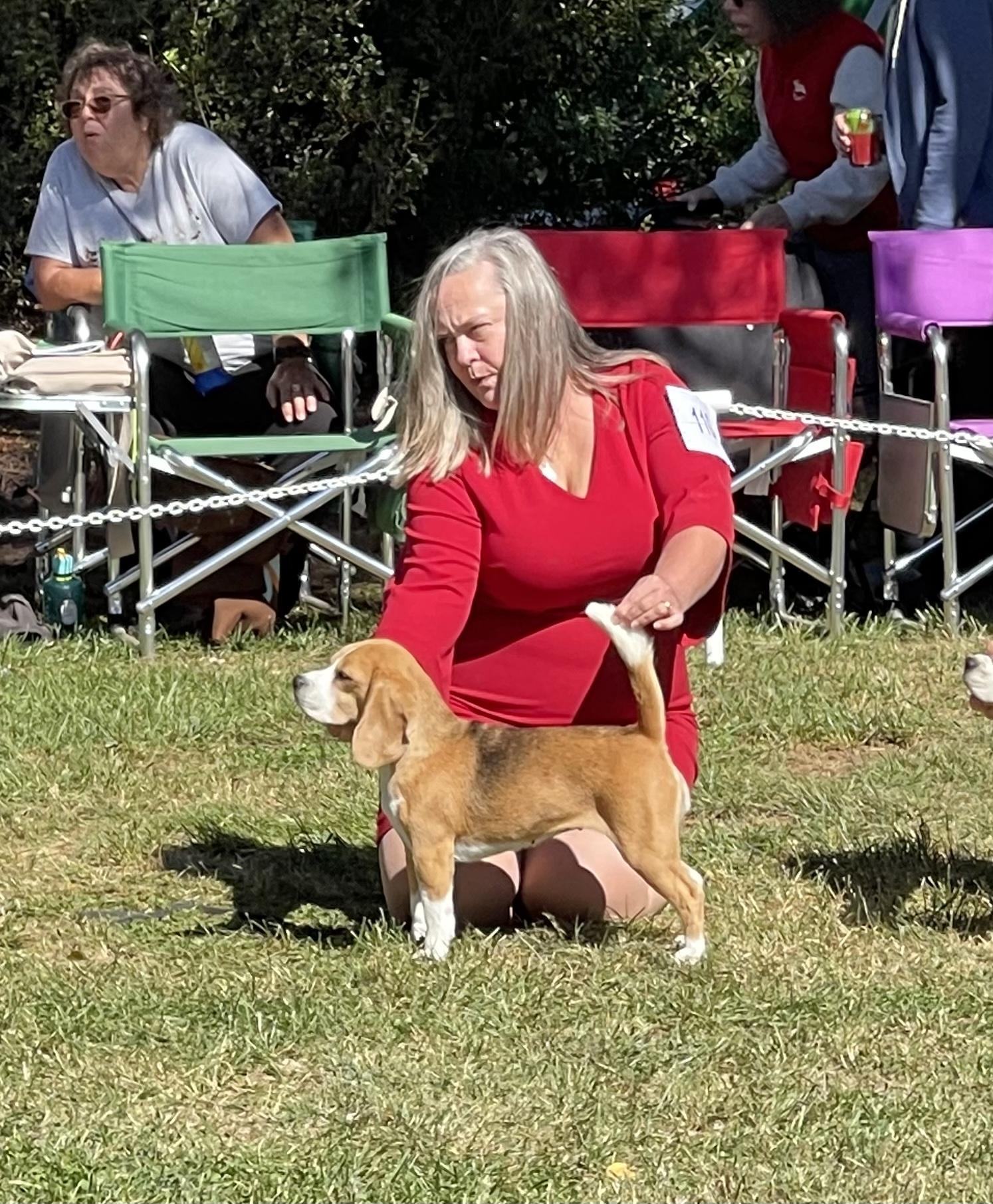We actually started with our son in 4H. He had 2 mixed breed dogs and wanted a pure breed so that he could do AKC showmanship. A Beagle mentor offered to take him under her wing, and that was it for us! Our line is based on his first junior dog, Reba, who had the nickname Red Devil. She actually stated 4H agility champion!