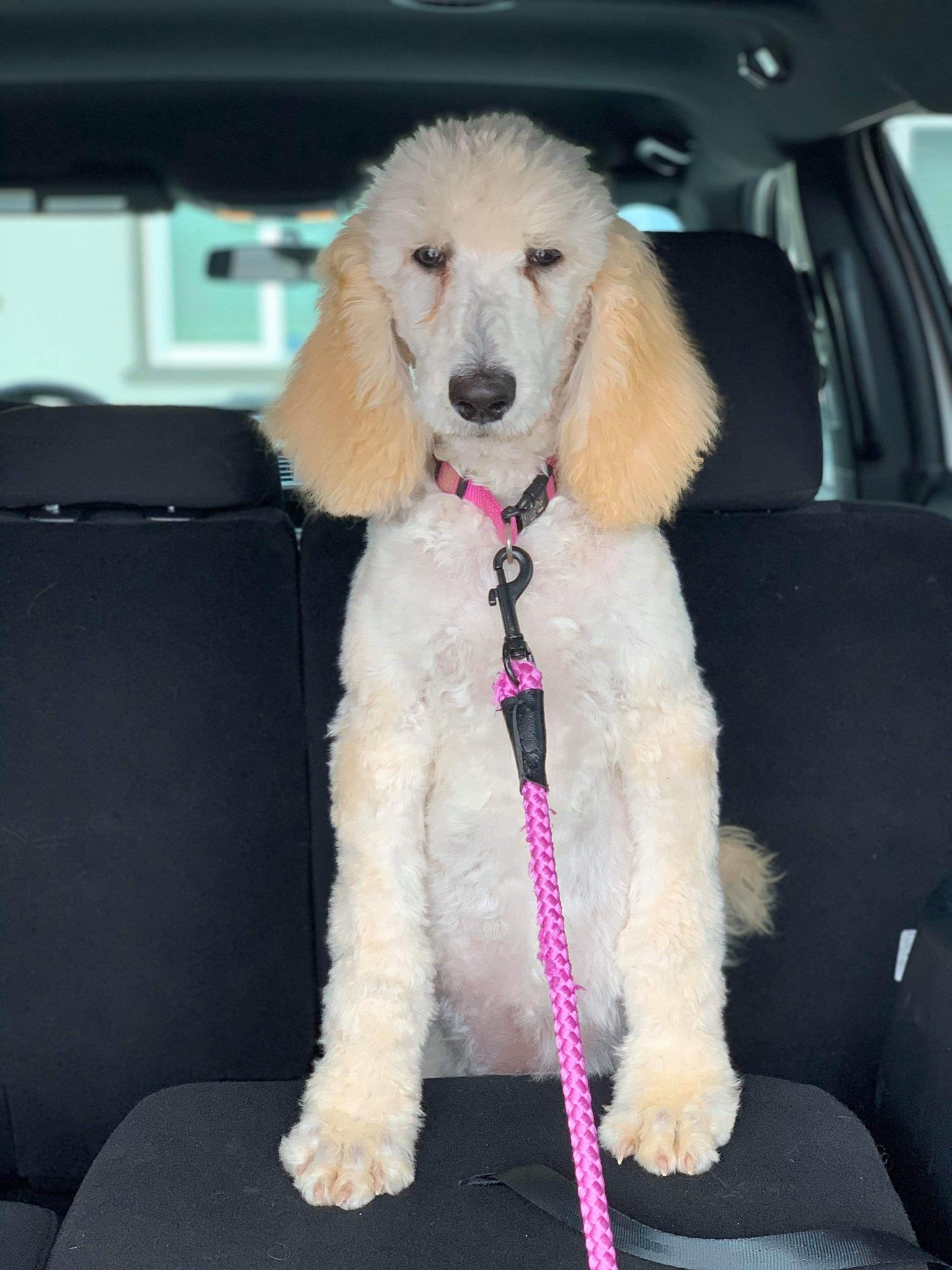 Mila is a female Poodle. Carefully selected as a great representative of her breed, Amy decided to make her part of their program. Amy has passed Good Dog’s screening process, which involved a review of their breeding practices, environment, and the mental and physical health of their dogs.