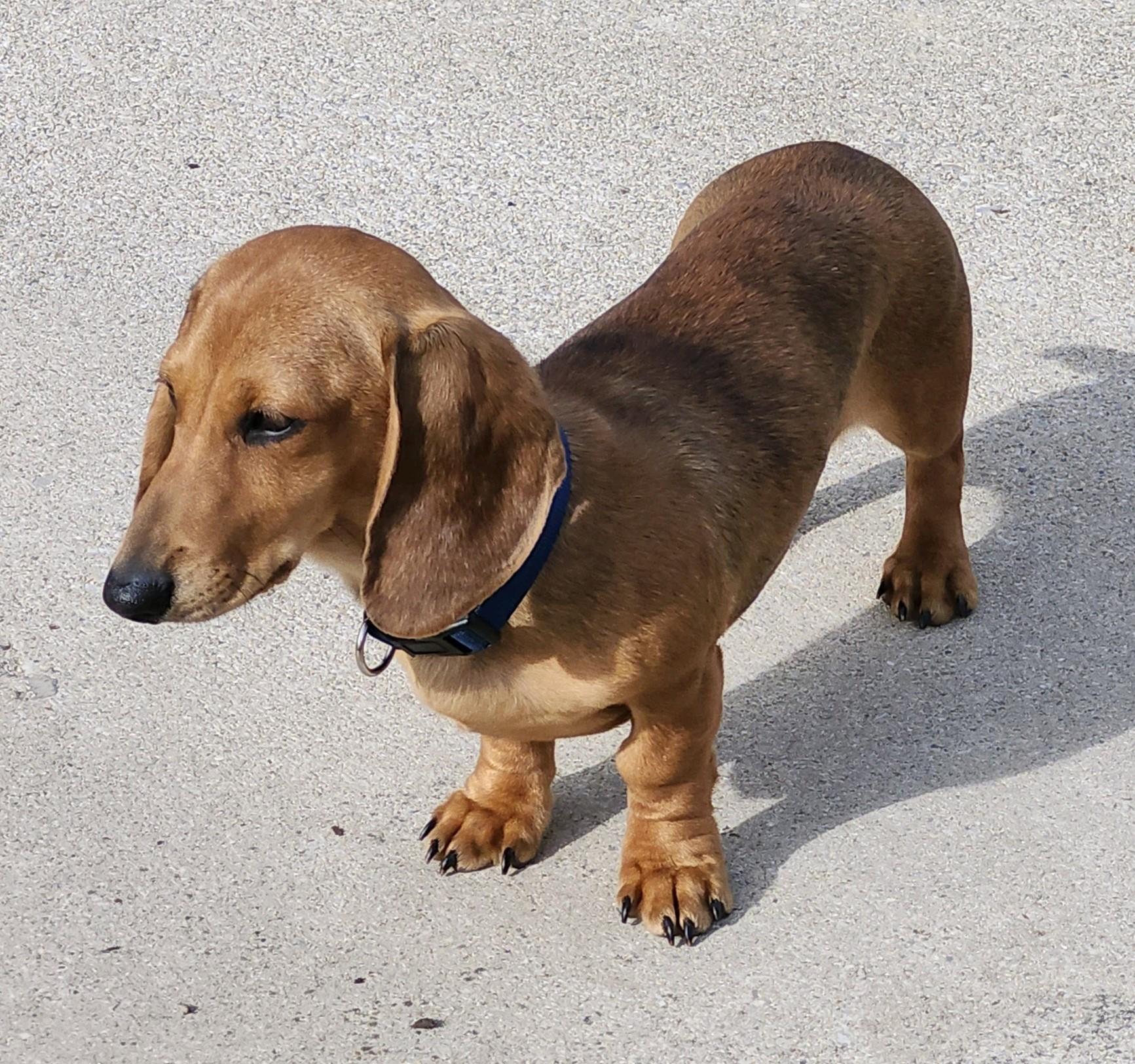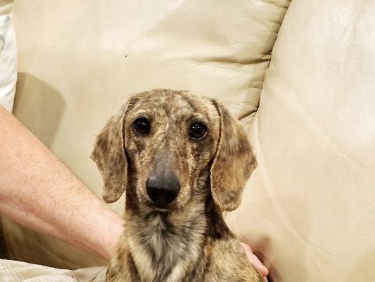 KitKat is a female Dachshund. Carefully selected as a great representative of her breed, Laura decided to make her part of their program. Laura has passed Good Dog’s screening process, which involved a review of their breeding practices, environment, and the mental and physical health of their dogs.
