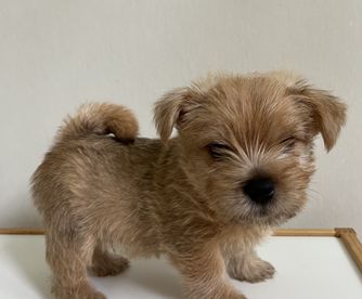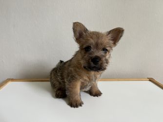 Alice is a delightful Norwich Terrier, radiating warmth and affection wherever she goes. With a playful personality, she brings joy to every moment, whether she's frolicking in the yard or curling up for a cozy cuddle. Intelligent and eager to learn, Alice thrives during training sessions, showcasing her quick wit and ability to master new tricks. Her friendly disposition makes her an excellent companion for families, and she easily gets along with children and other pets. Healthy and vibrant, Alice’s loving nature and spirited energy not only enrich her own life but also promise to pass on those wonderful traits to her puppies.