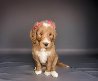 Our Dachshund puppies are miniature size. Goldendoodle puppies include miniature and medium sizes. Sizes will vary depending on the parent dogs.