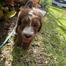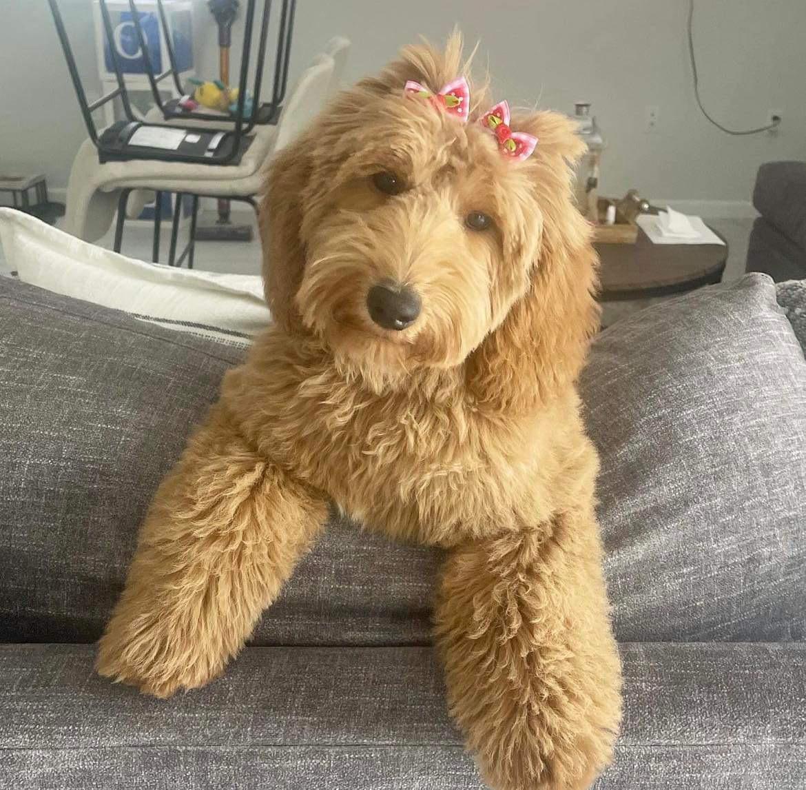 Jinx is a female Goldendoodle. Carefully selected as a great representative of her breed, Ofelia decided to make her part of their program. Ofelia has passed Good Dog’s screening process, which involved a review of their breeding practices, environment, and the mental and physical health of their dogs.