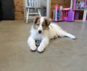 I'm Chelsey M., the breeder behind Redside Rough Collies located in Argyle, IA. All of our puppies are born in our home, and socialized and handled from the first day. They are exposed to large dogs, small dogs, cats, chickens, adults, children and sights and sounds of a household. We take socialization and desensitization very seriously and know just how important it is for the lifelong happiness of both pet and family! My daughters (5&8) spend hours each day holding and playing with the litter, once old enough they are able to play and run freely in our fenced in yard with our children and several dogs and cats as well. Please do not hesitate to reach out with any questions you may have about our babies! Puppies will be vet checked at/by 8 weeks, UTD on worming and vaccines and microchipped prior to leaving.