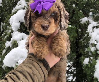 I'm Dakota A., the breeder behind Redwood Aussiedoodles located in Upper Lake, CA. We are an Aussiedoodle breeder located in Northern California that focuses on raising the most well-adjusted puppies possible. We are a small home breeding program that has about 1-2 litters a year. All of our puppies are multigen standard Aussiedoodles that weigh 40-55lbs. We hope to expand our program in the future and are happy to include new people to our Redwood Aussiedoodle family.