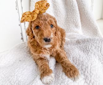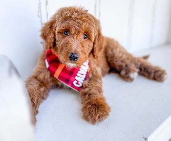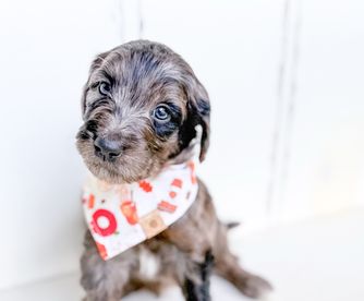 Our Bernedoodle puppies include sable, phantom, and merle. Poodle puppies include sable, apricot, brown, cream, red, parti, and phantom. Goldendoodle puppies include cream, apricot, red, black, and merle. Colors will vary depending on the parent dogs.