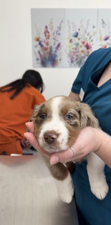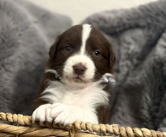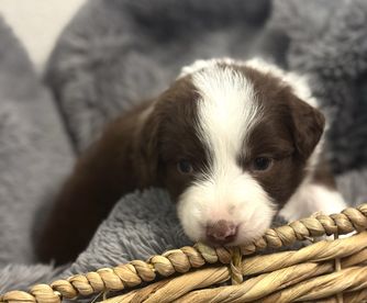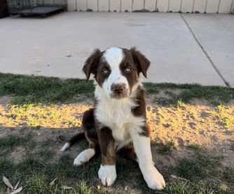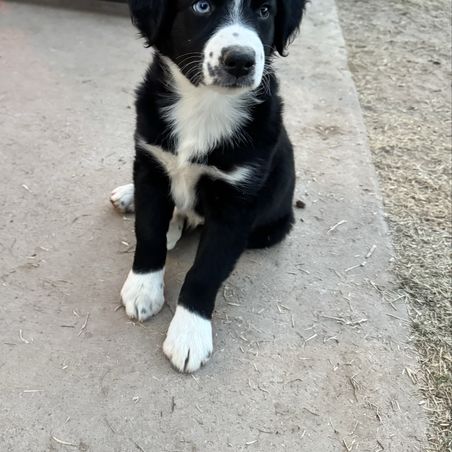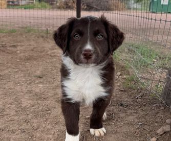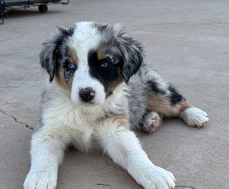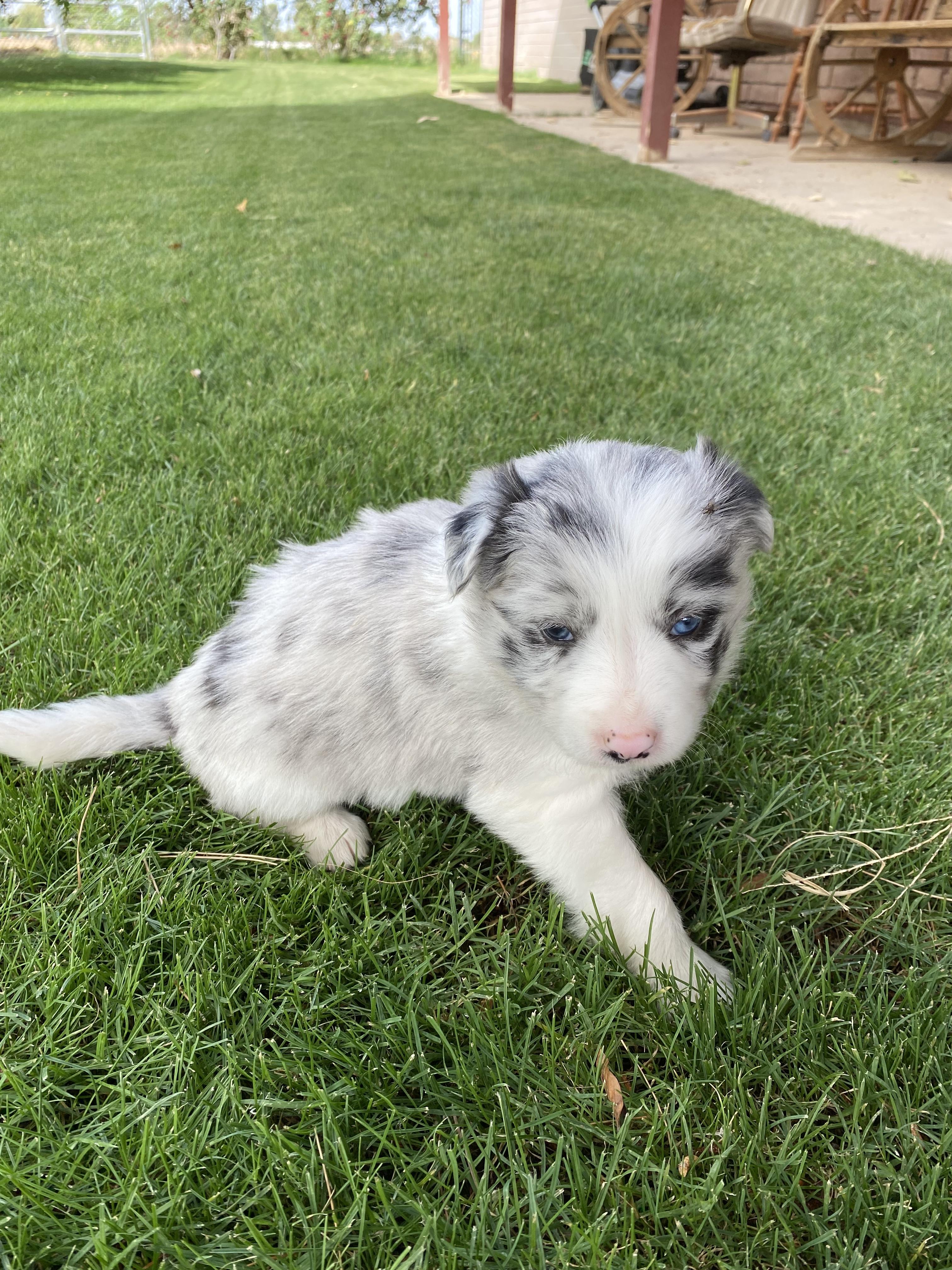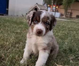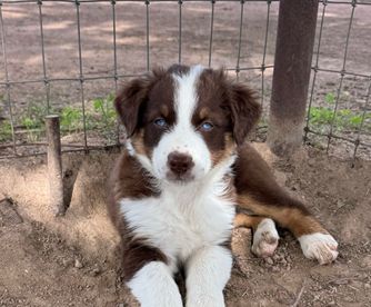 Our puppies include red & white, black & white, red merle, blue merle, black tri-color, and red tri-color. Colors will vary depending on the parent dogs.