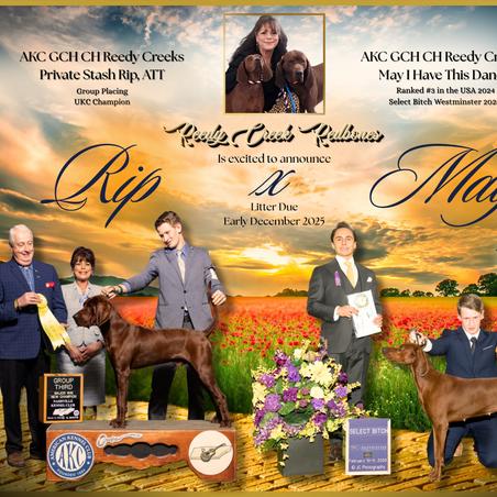 Puppies were born today May 31,2025. We have 1 male and 4 females available. Daddy Rip is AKC conformation GRCh and momma Vixxen is AKC Conformation CH.