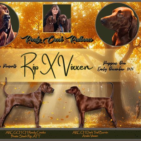 I'm Judy W., the breeder behind Reedy Creek Redbones located in Bristol, VA. Our dogs are bred for health, temperament, and ability. We strive to produce beautiful and versatile beloved companions. We strive to produce well-rounded, balanced Redbone Coonhounds that make exceptional family companions but also have the ability to thrive in whatever role they are needed.
