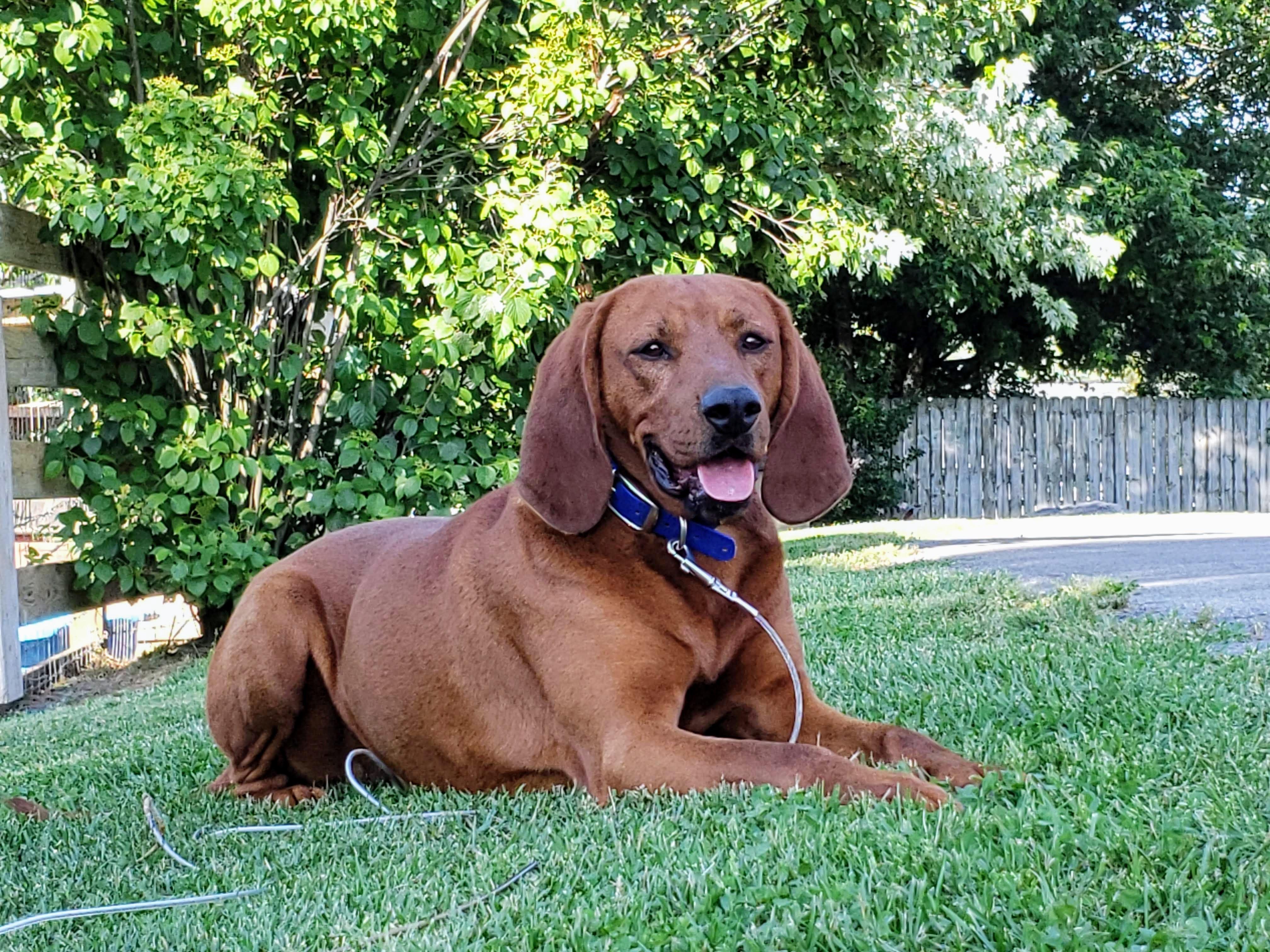 Rip is a male Redbone Coonhound about 4 years old. Carefully selected as a great representative of his breed, Judy decided to make him part of their program. Judy has passed Good Dog’s screening process, which involved a review of their breeding practices, environment, and the mental and physical health of their dogs.