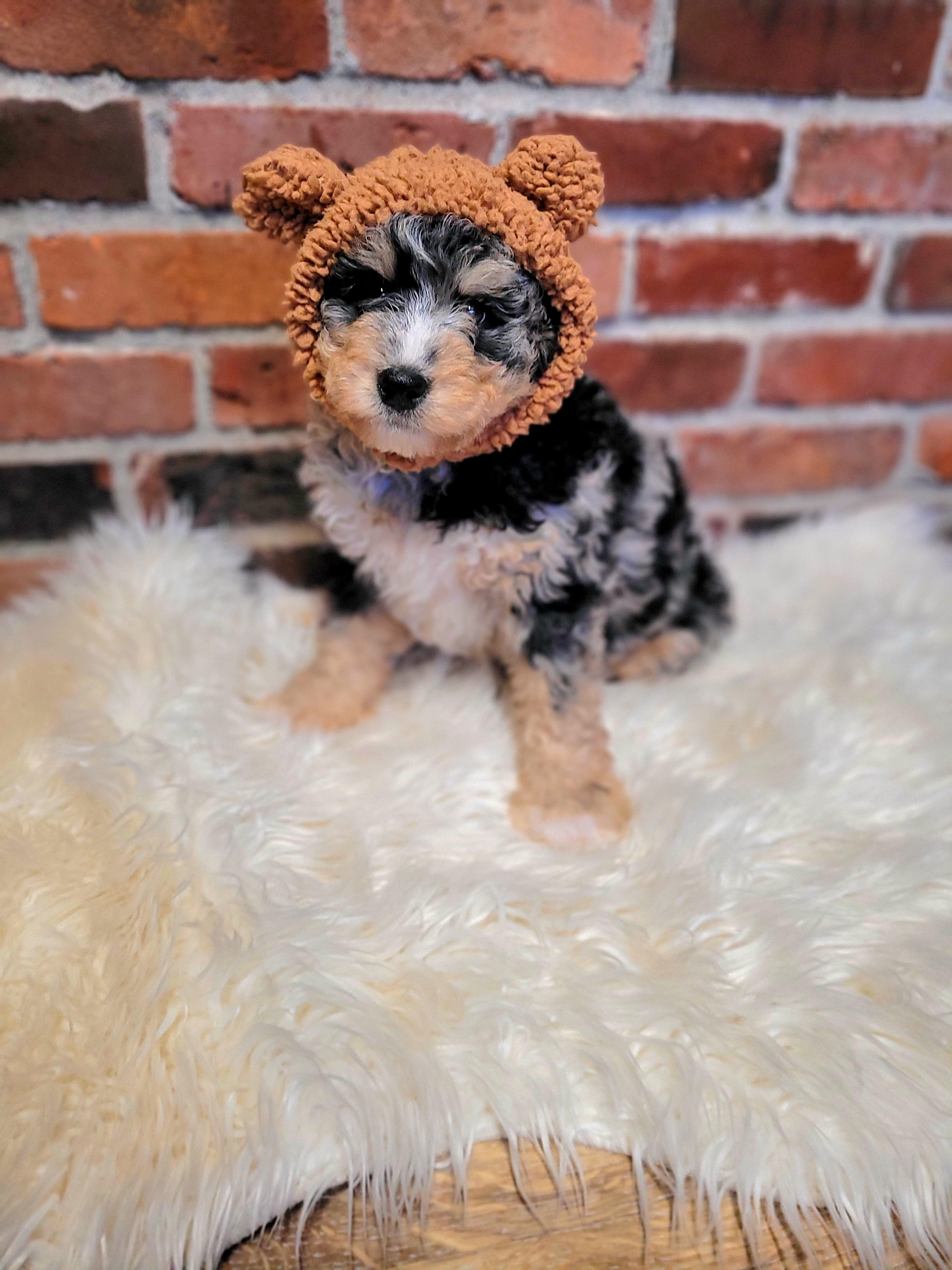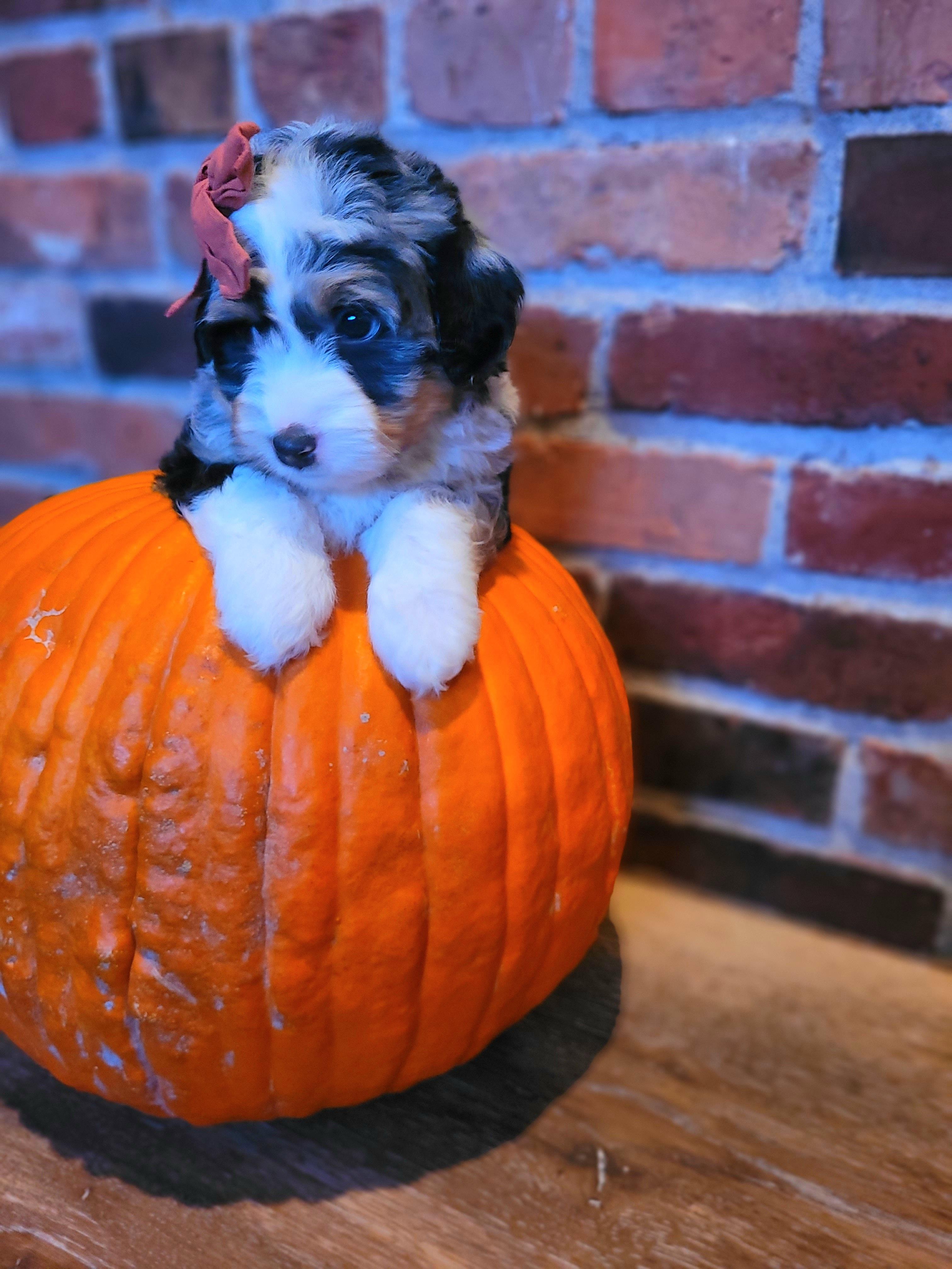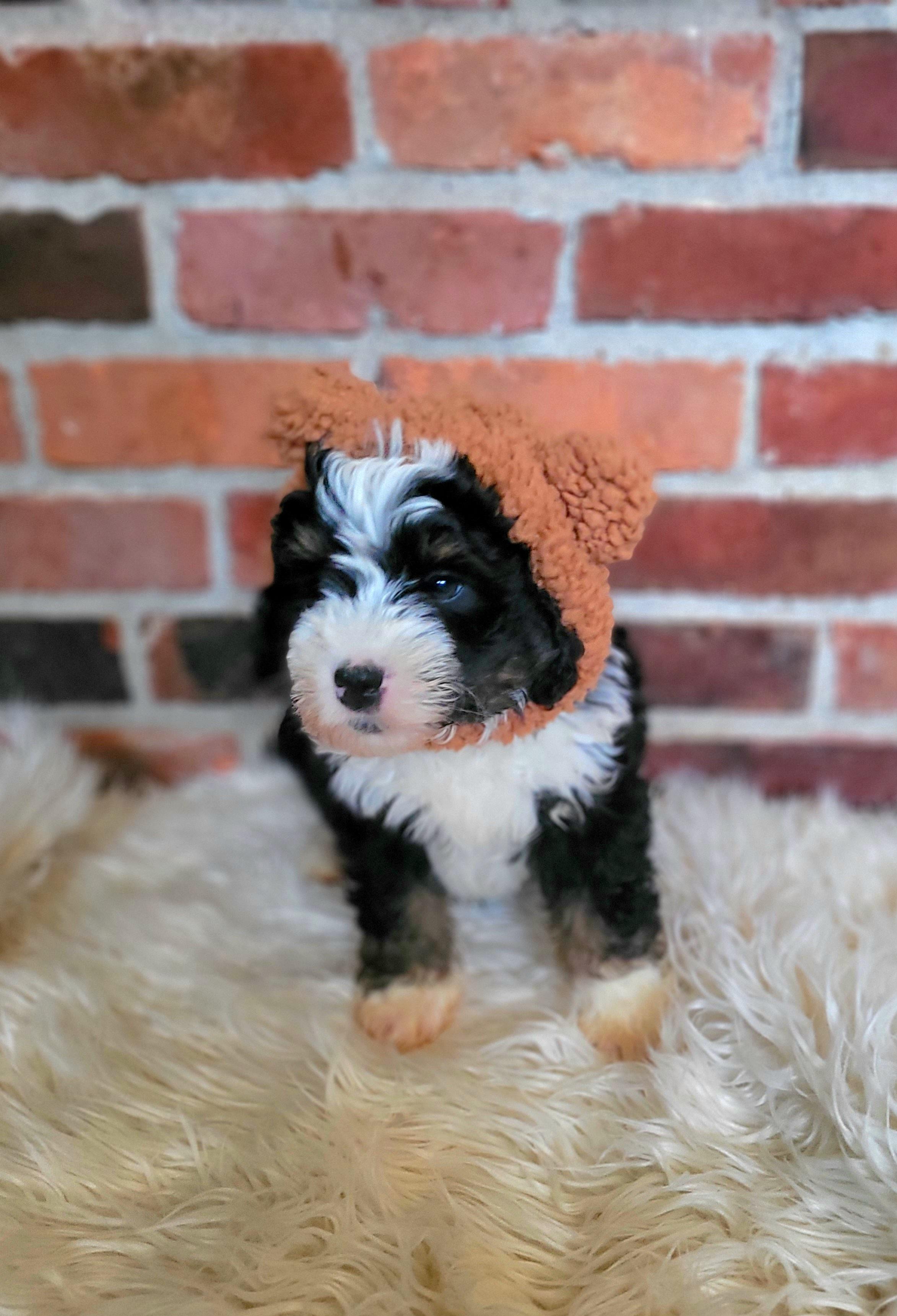 Sawyer is a micro/mini Multigen Bernedoodle. He is confident, affectionate, and very human focused.
