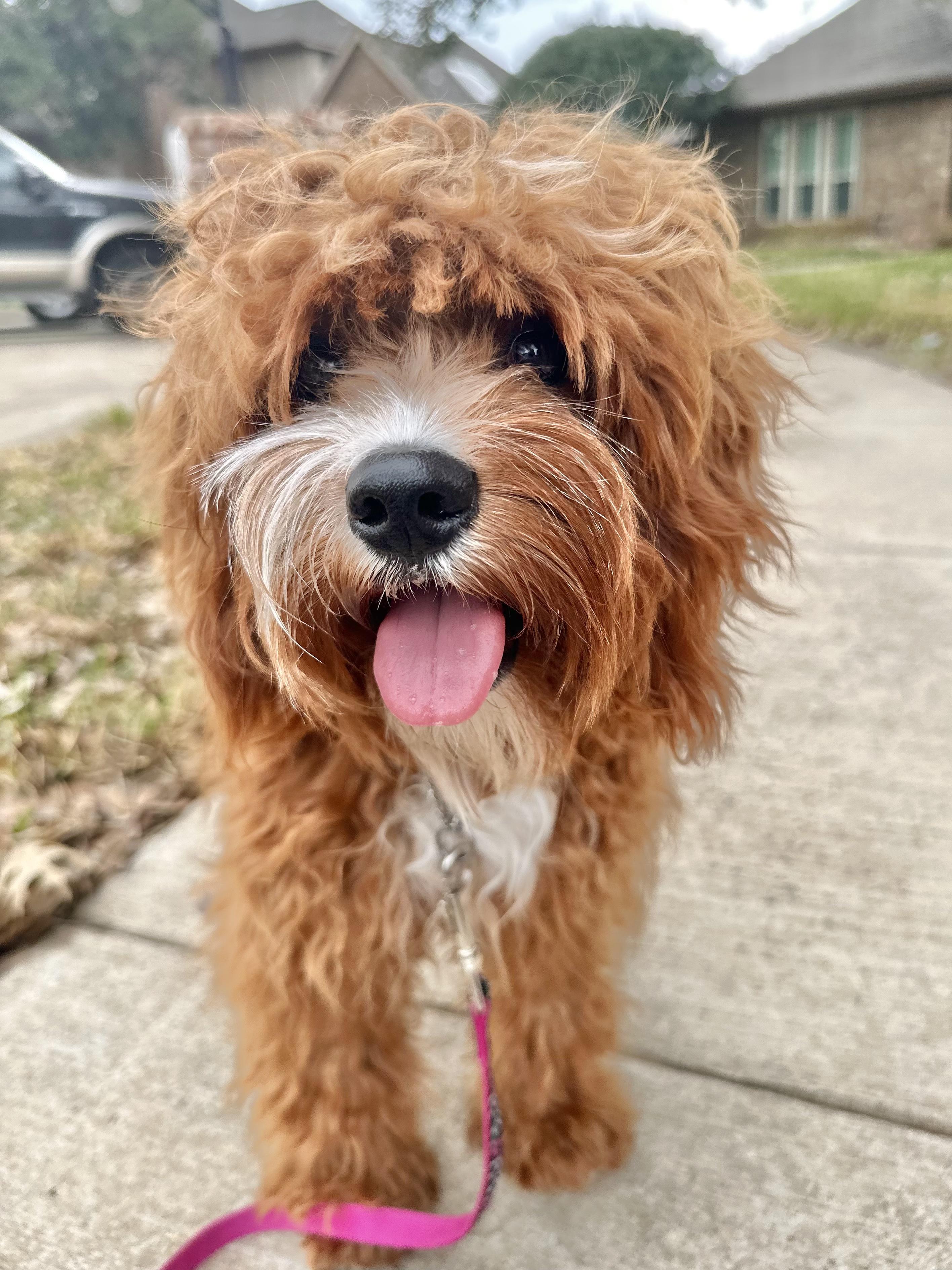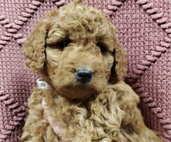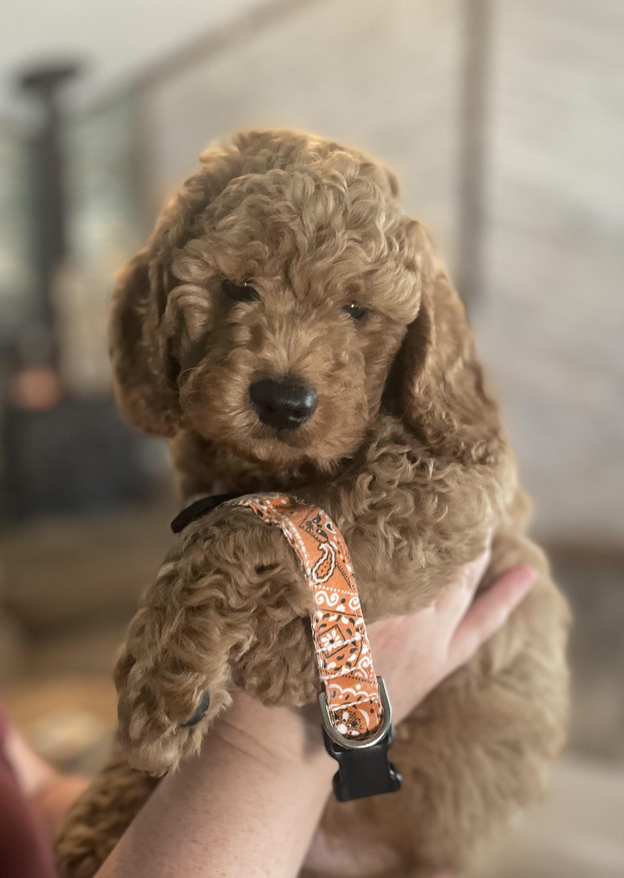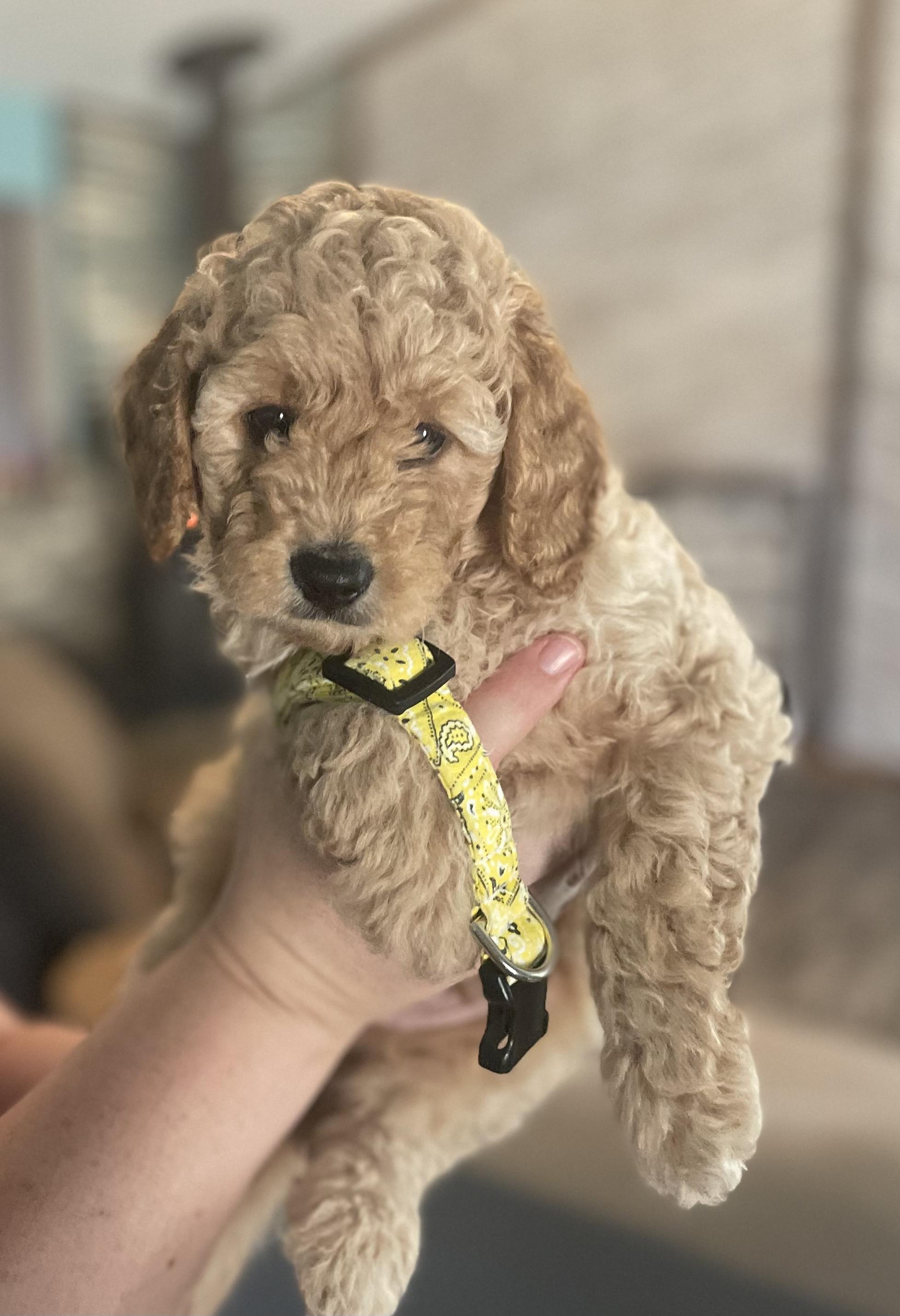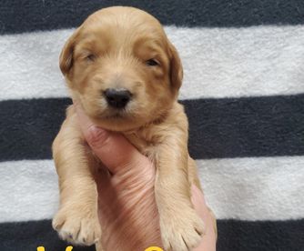 Our Cavapoo puppies include blenheim, apricot, and red. Goldendoodle puppies include cream, apricot, and red. Colors will vary depending on the parent dogs.