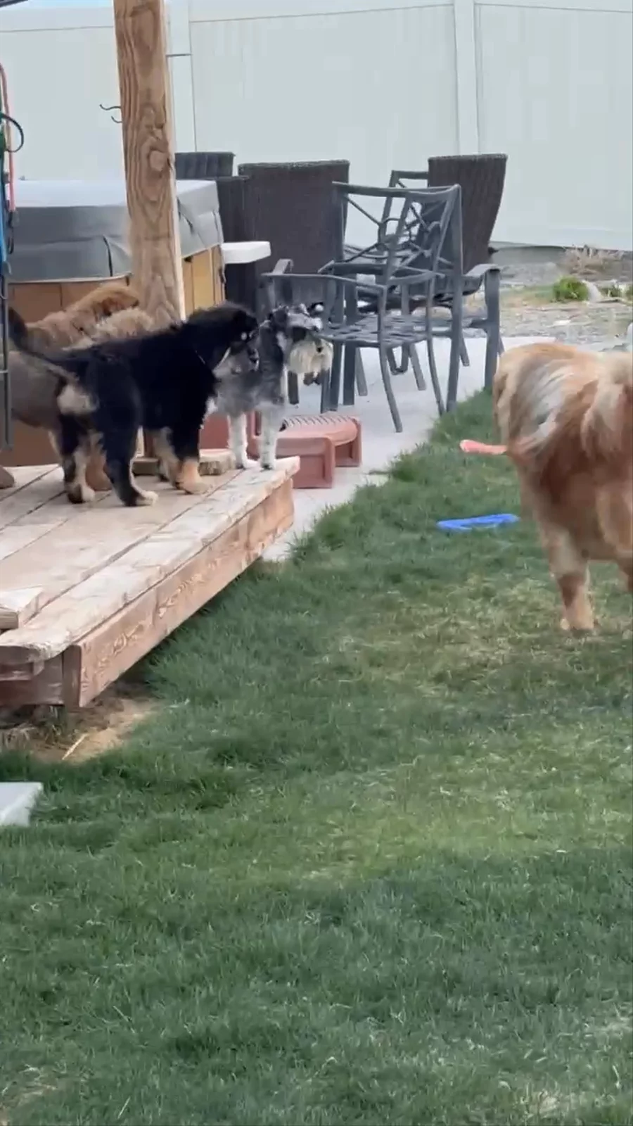 Moose is gentle-natured and loves meeting new people and having them love on him. When he is not doing that he is trying to convince any of the other dogs to play with him. Their calm, patient demeanor makes them wonderful around our kids. They're AKC registered.