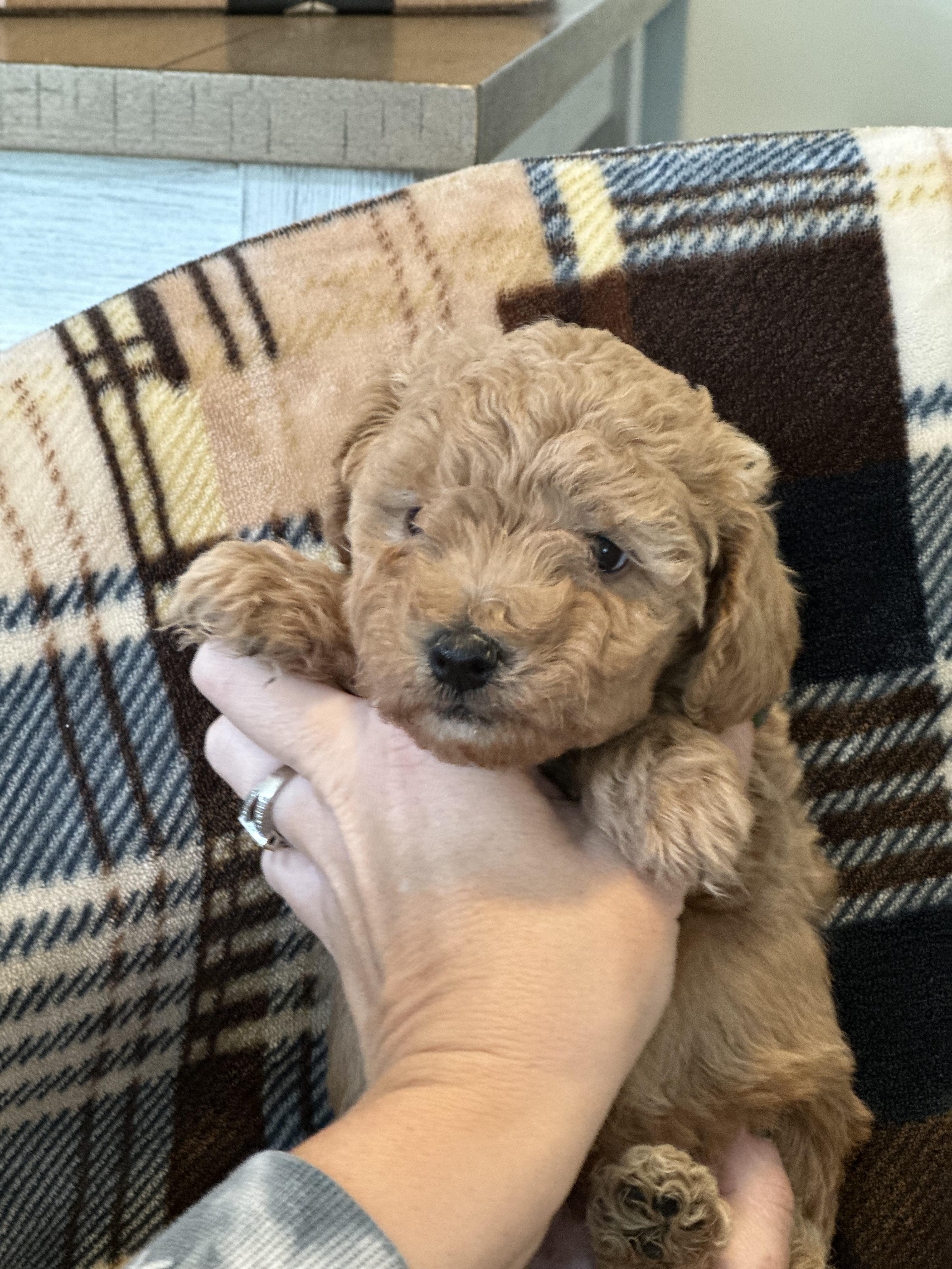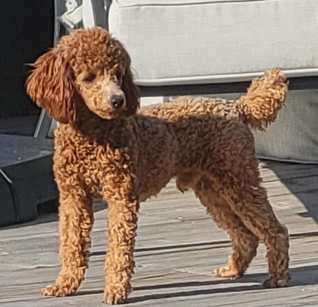 Tilly is a beautiful dark red AKC Toy Poodle. She loves to play and hang out with her people!