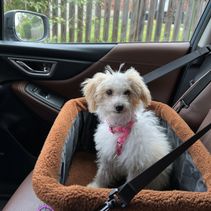Reining Glory Acres was very accommodating with my schedule to pick up Sarayah now Penny. They answered any of my questions. They gave me sweetest little dog who loves everyone especially children. I am very grateful I found Reining Glory Arces on your site. The first picture of Penny was after I trim some hair from he face. The second picture is Penny riding shotgun in her new car seat.