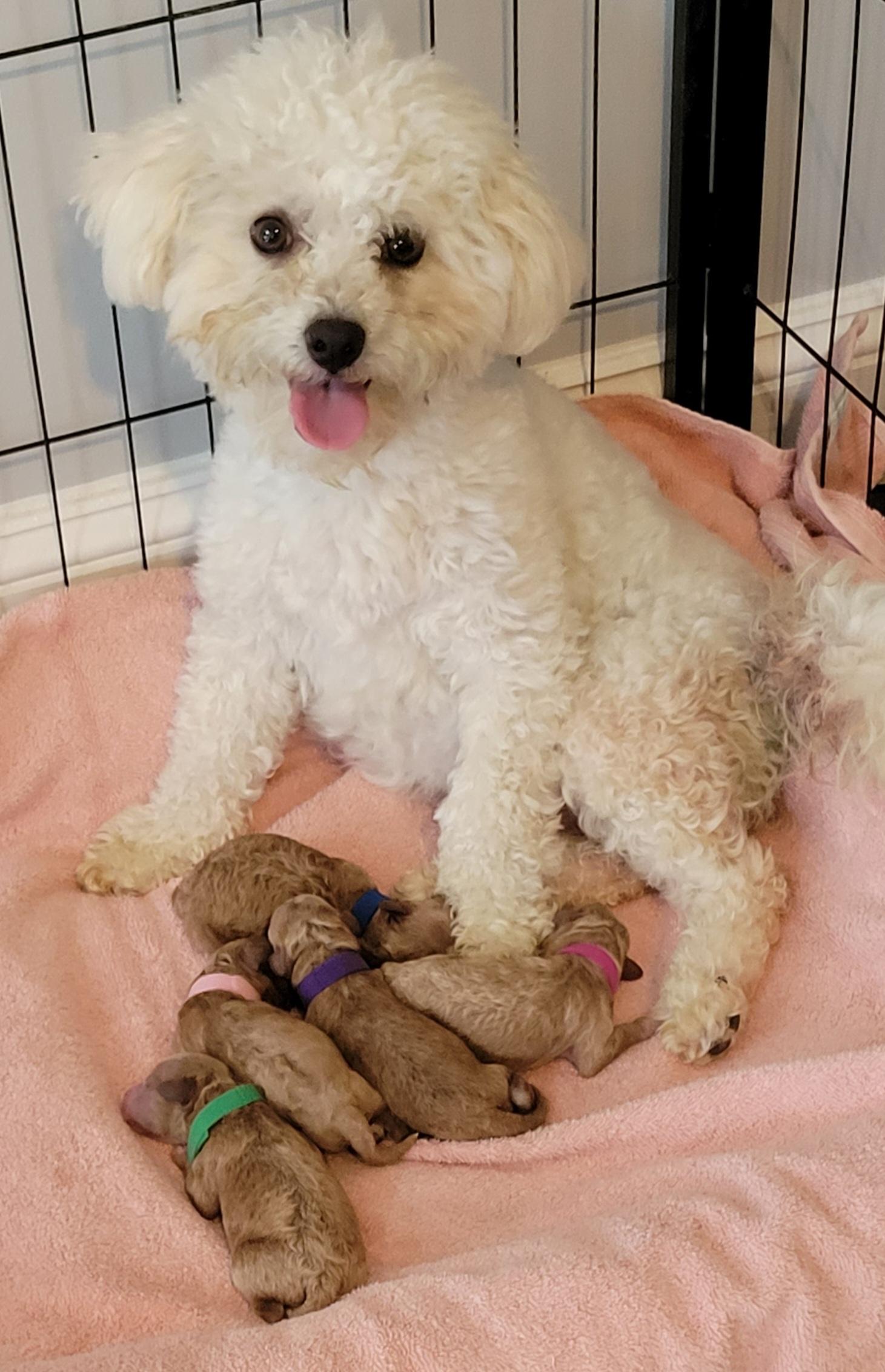 Della is a female Havapoo. Carefully selected as a great representative of her breed, Nicole decided to make her part of their program. Nicole has passed Good Dog’s screening process, which involved a review of their breeding practices, environment, and the mental and physical health of their dogs.