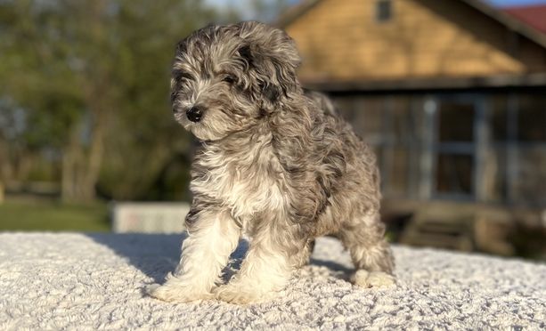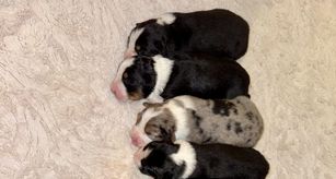 Our Australian Shepherd puppies include red merle, blue merle, black tri-color, and red tri-color. Aussiedoodle puppies include blue merle, red merle, black phantom, black and white, black tri-color, and red phantom. Colors will vary depending on the parent dogs.