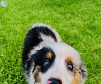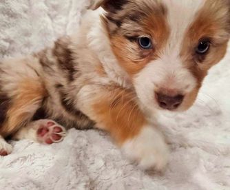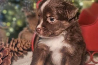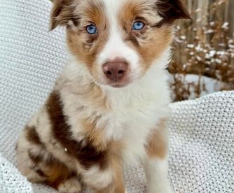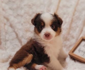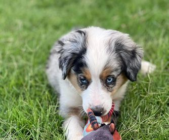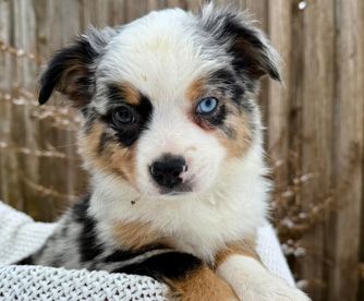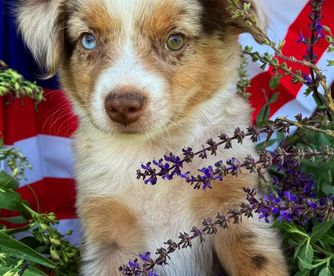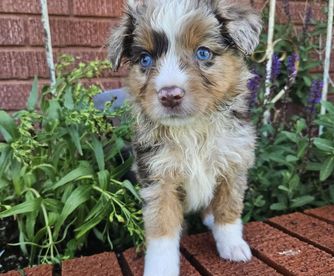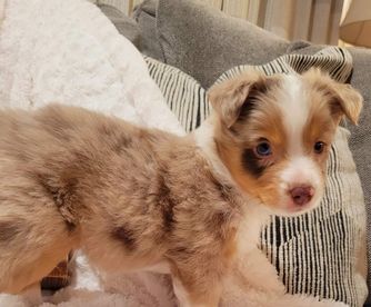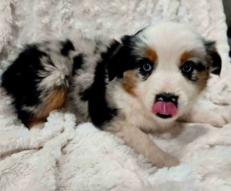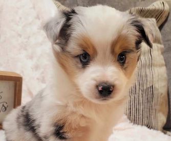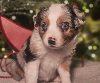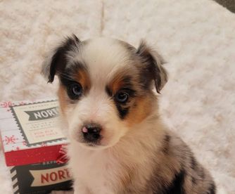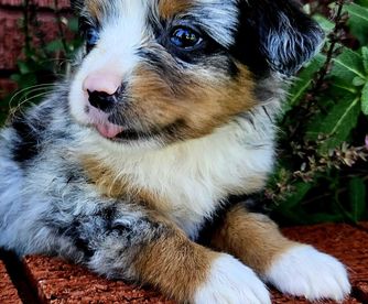 Our puppies include blue merle, black tri, red tri, and red merle. Colors will vary depending on the parent dogs.