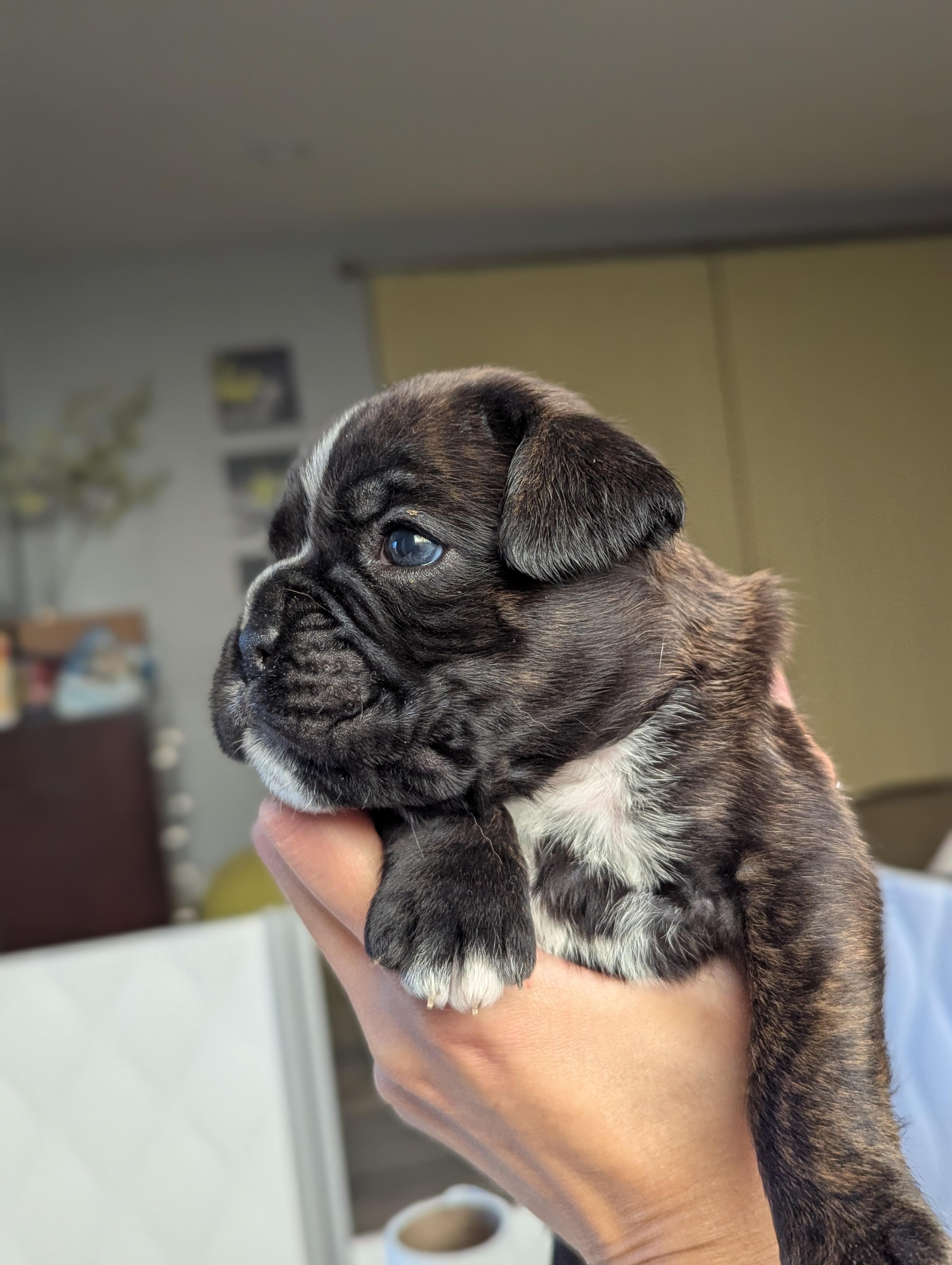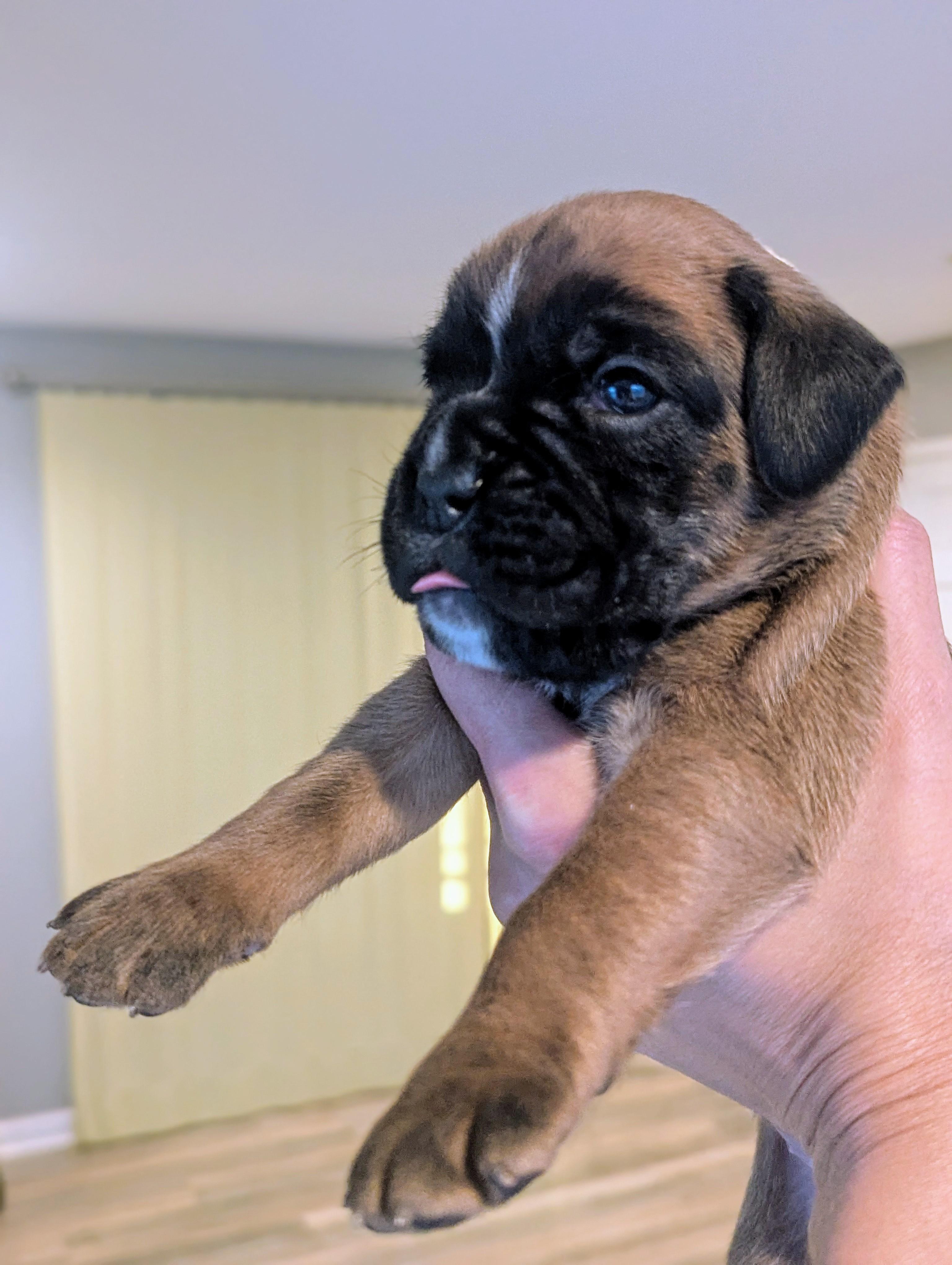 Our puppies include fawn and brindle. Colors will vary depending on the parent dogs.