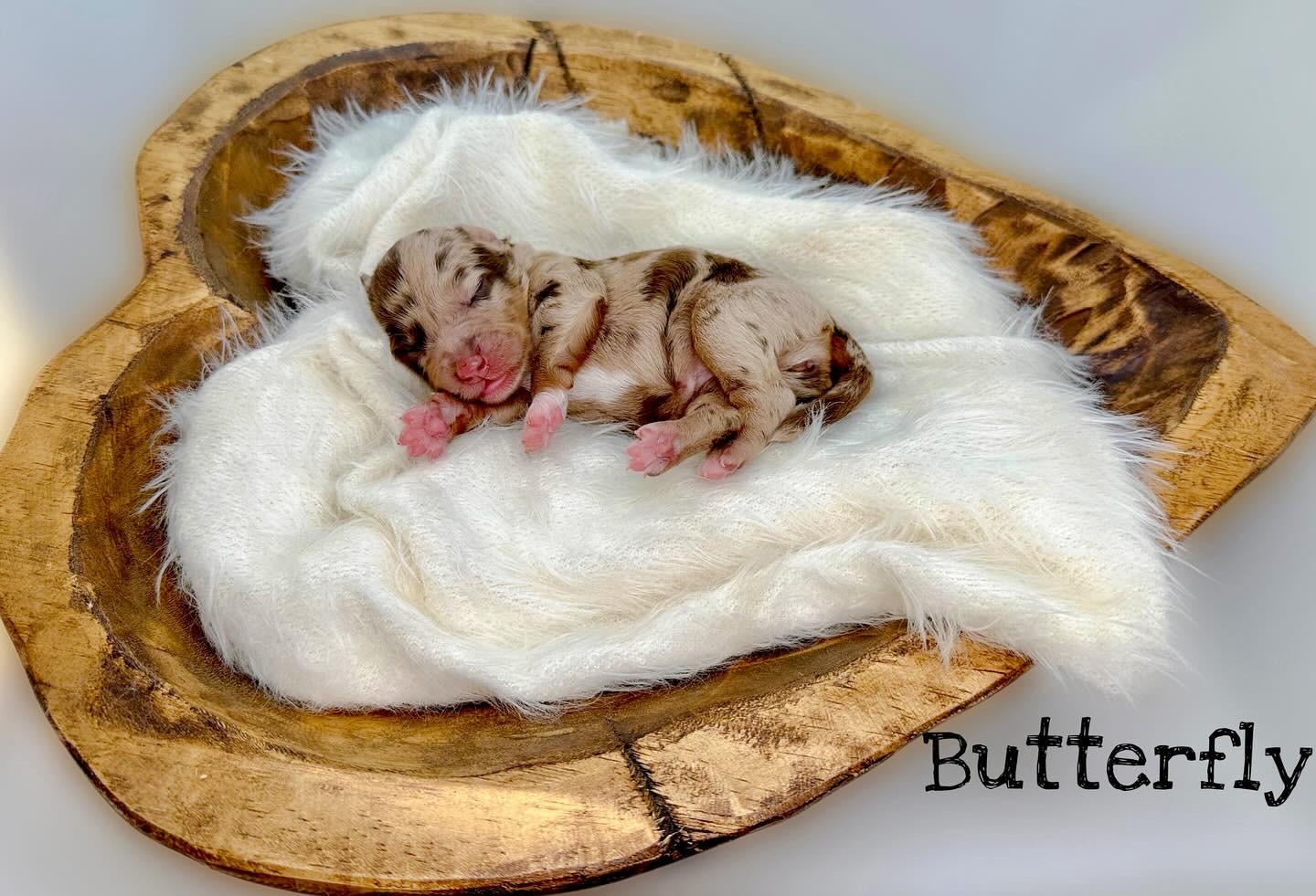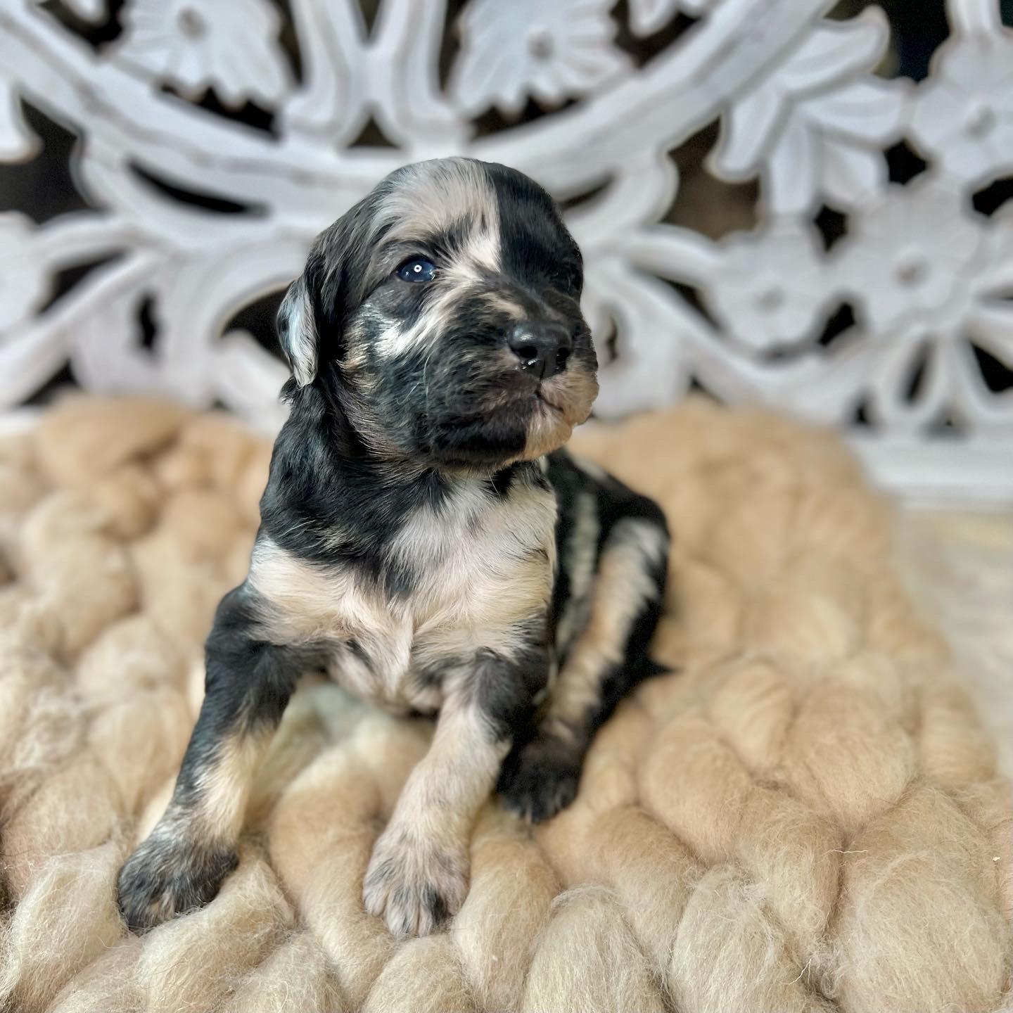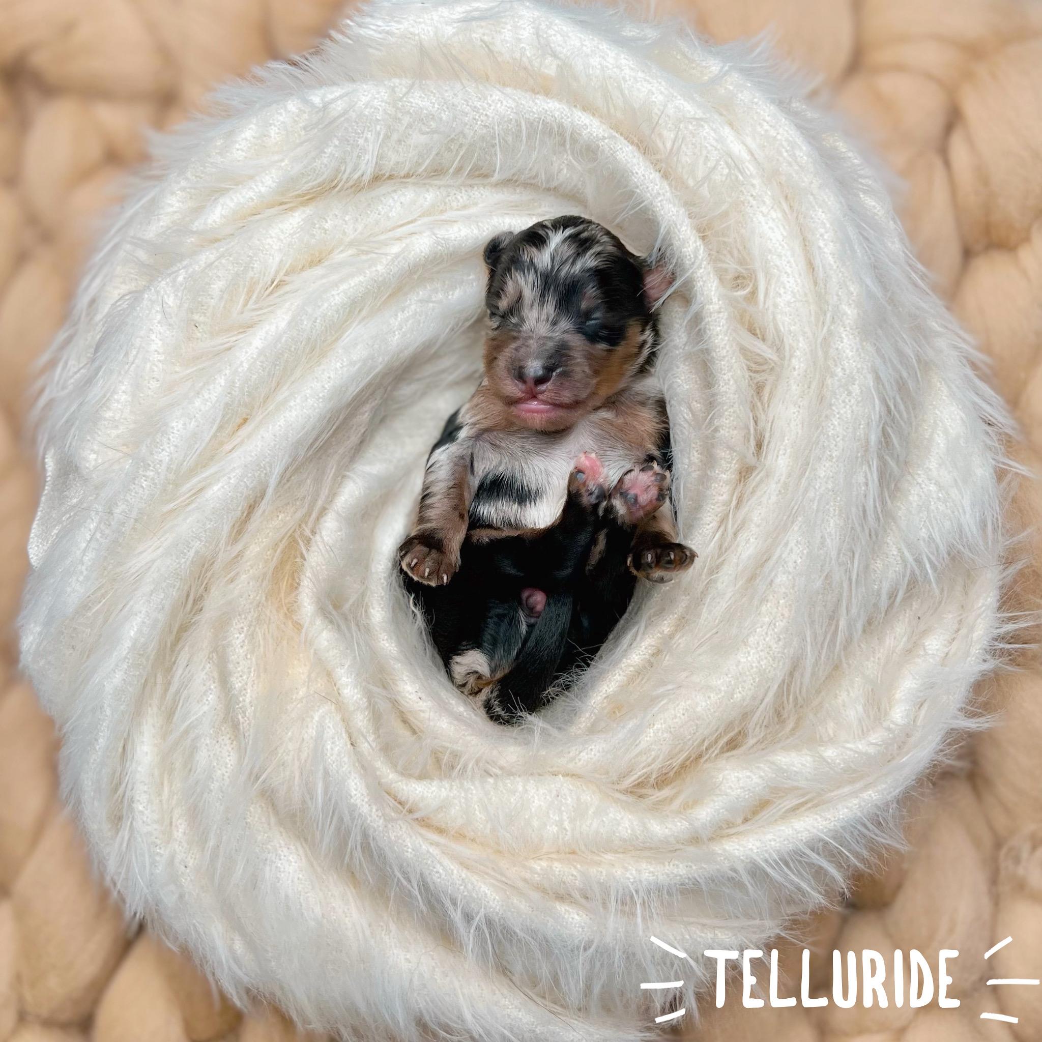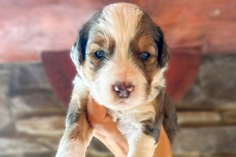 Aussiedoodle puppies include blue merle, red merle, black phantom, black and white, black tri-color, red phantom, and red tri-color. Colors will vary depending on the parent dogs.
