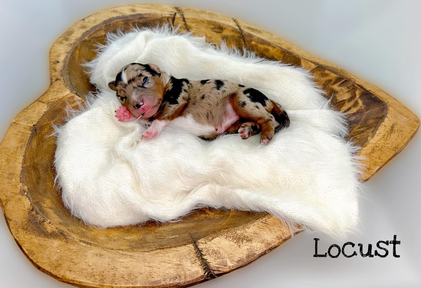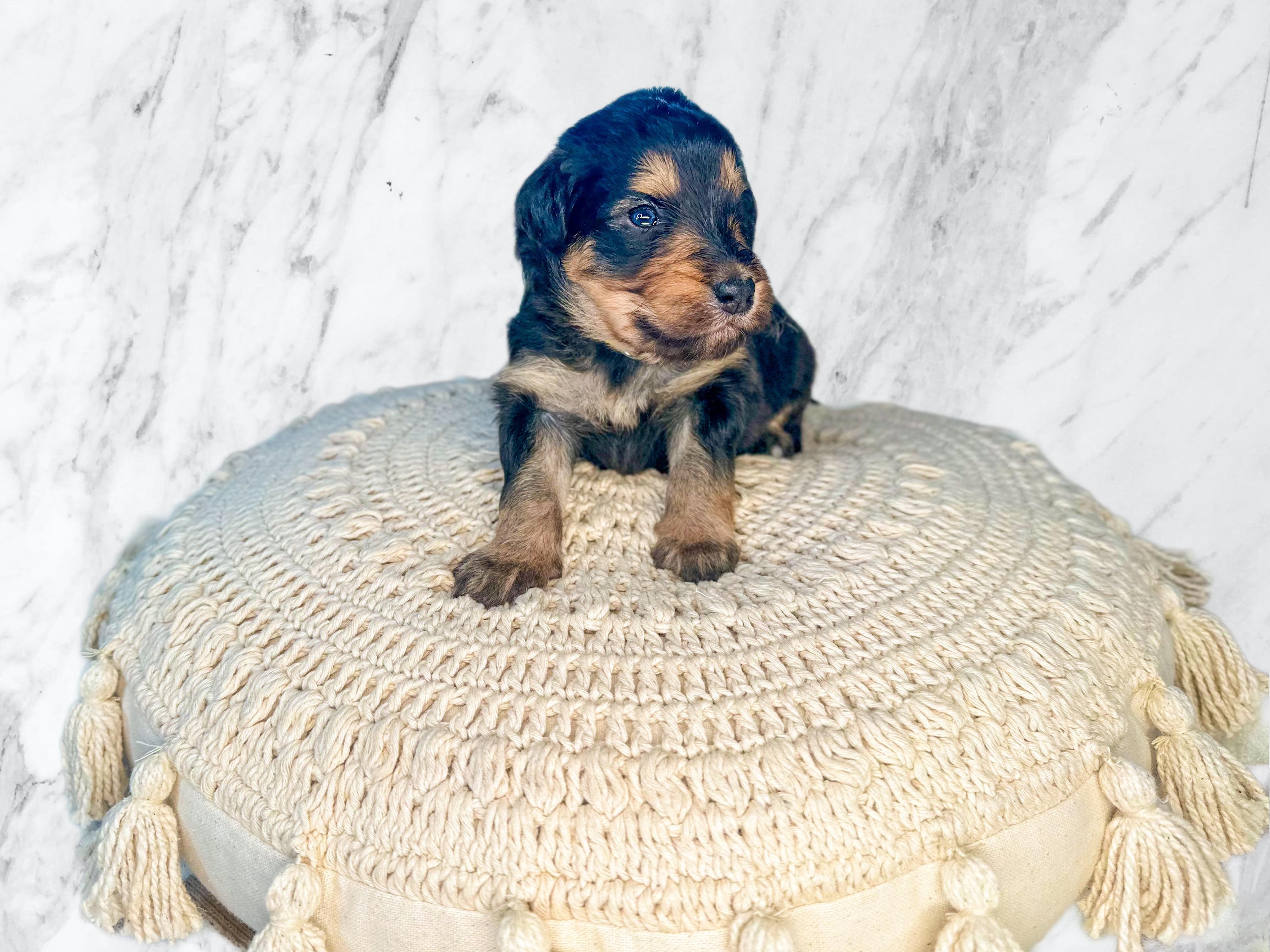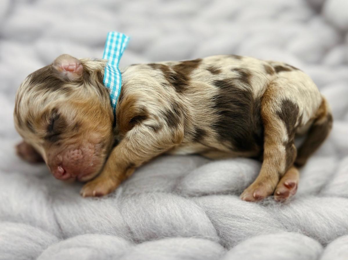 Aussiedoodle puppies include blue merle, red merle, black phantom, black and white, black tri-color, red phantom, and red tri-color. Colors will vary depending on the parent dogs.