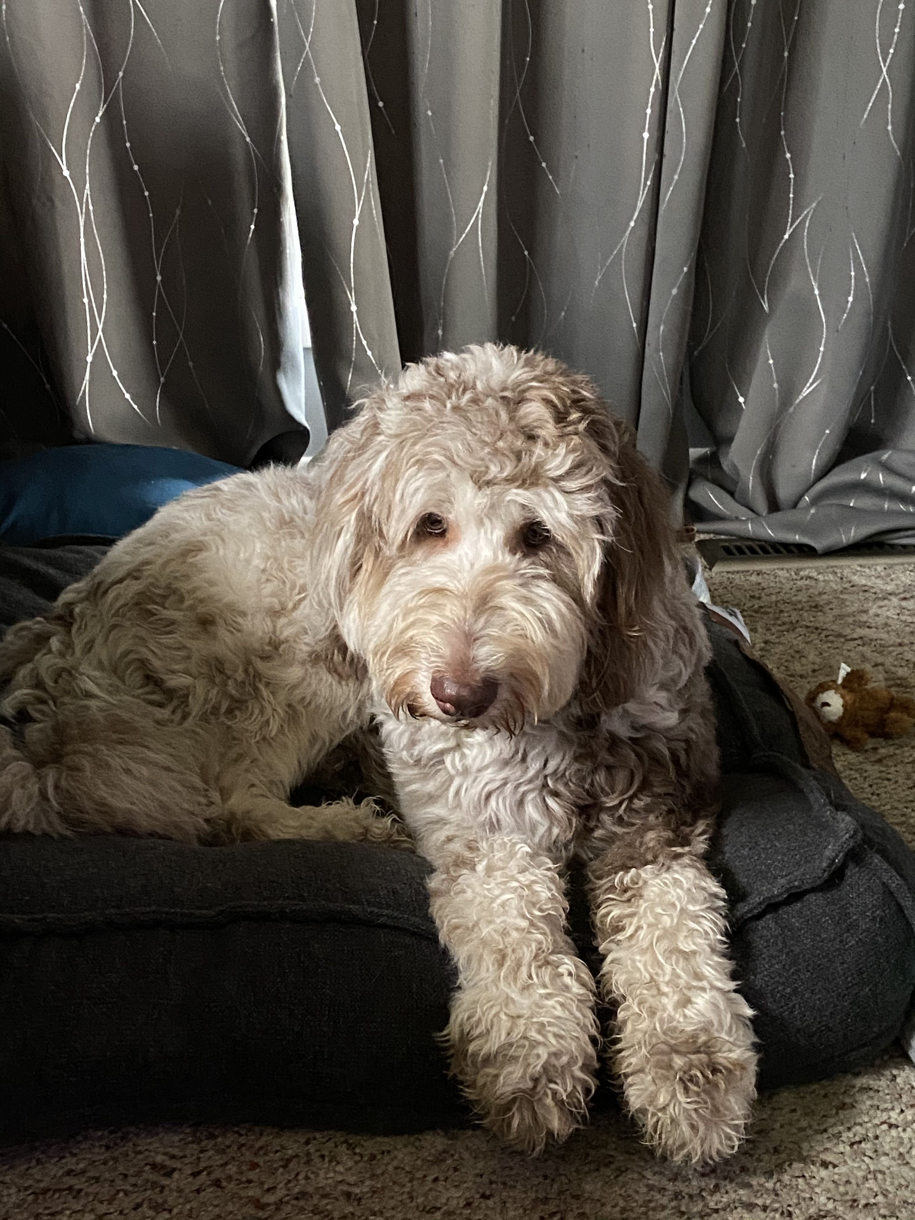Kona is a female Sheepadoodle. Carefully selected as a great representative of her breed, Amy decided to make her part of their program. Amy has passed Good Dog’s screening process, which involved a review of their breeding practices, environment, and the mental and physical health of their dogs.