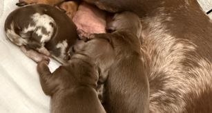 Our puppies include chocolate and tan and dapple. Colors will vary depending on the parent dogs.