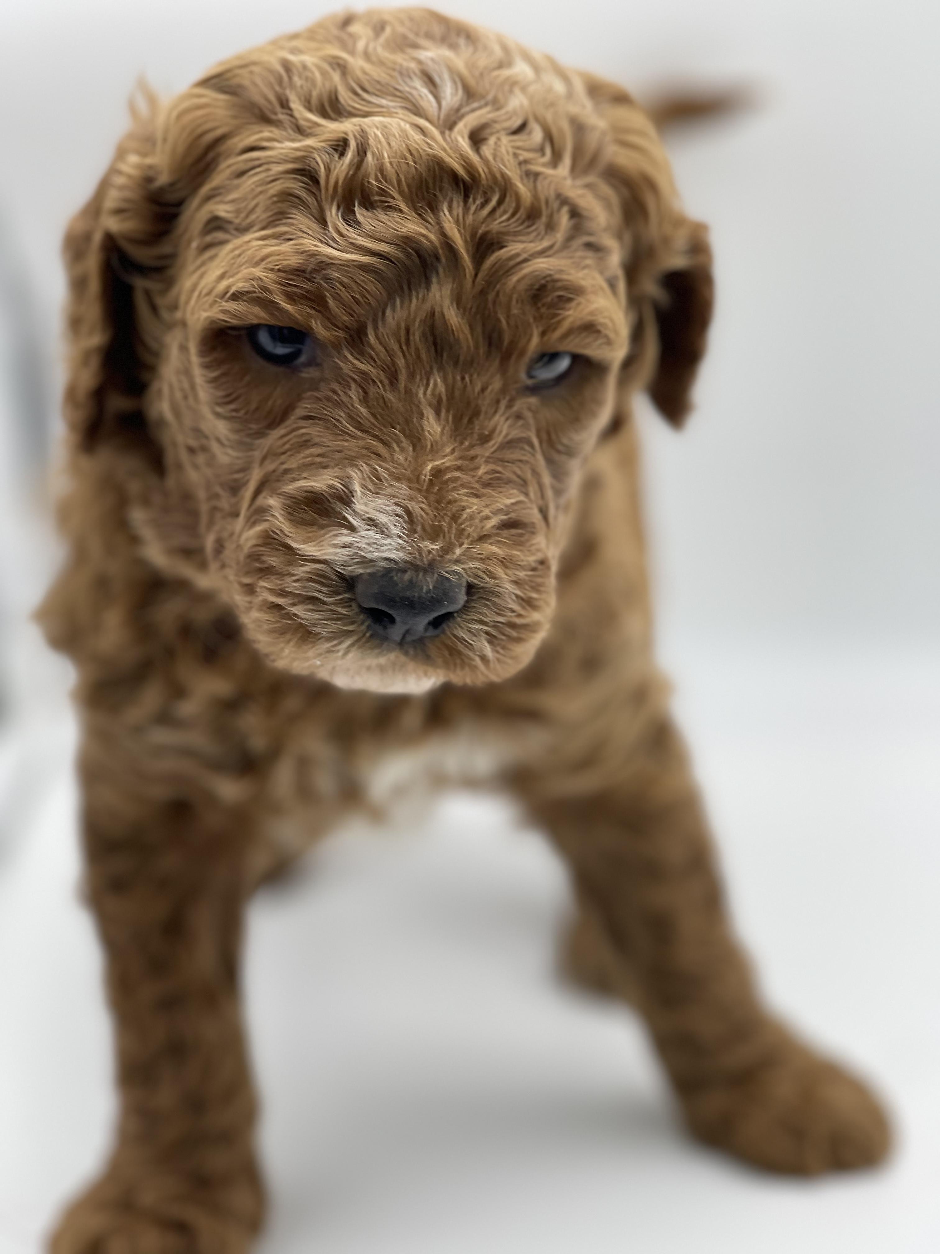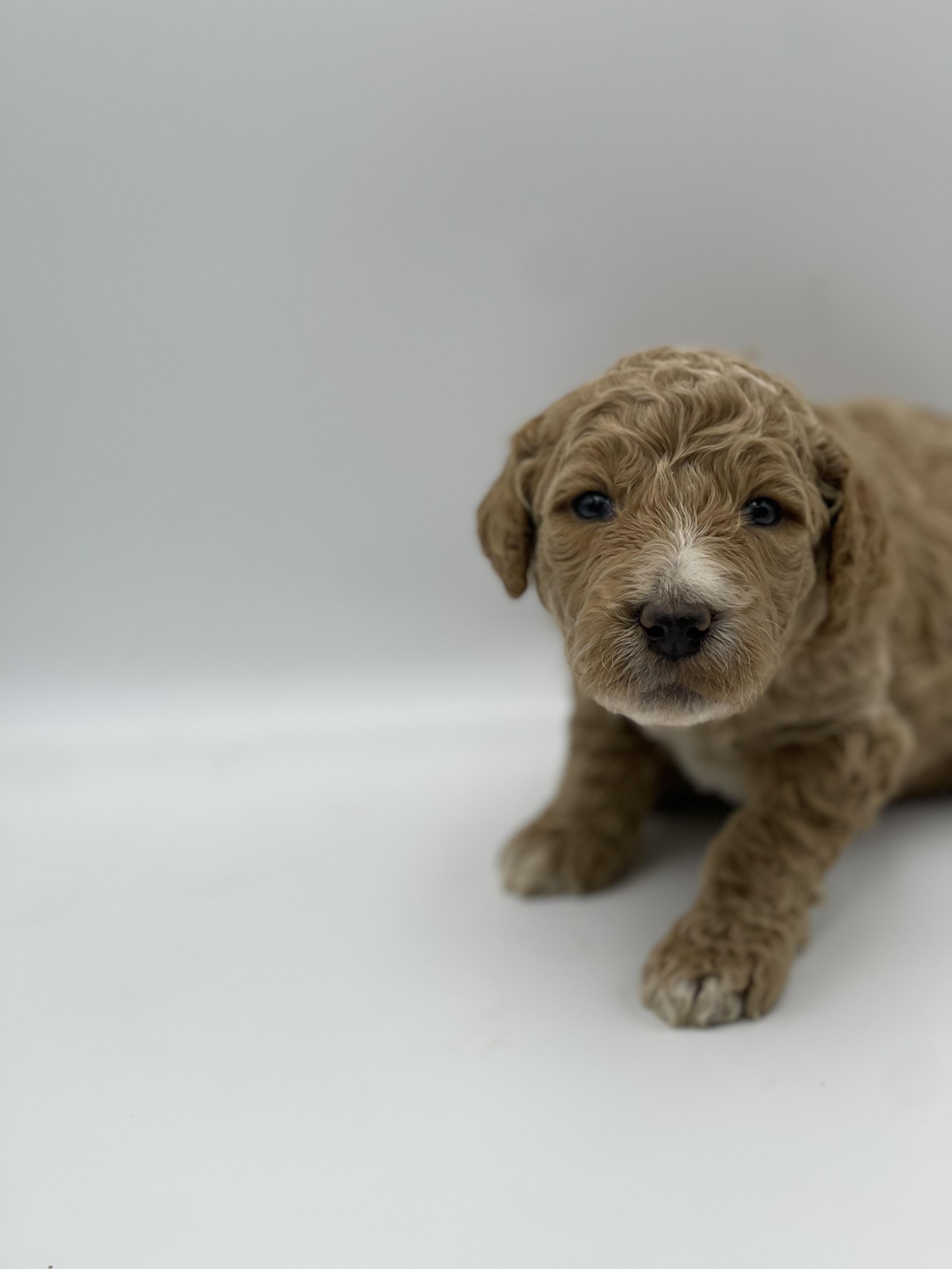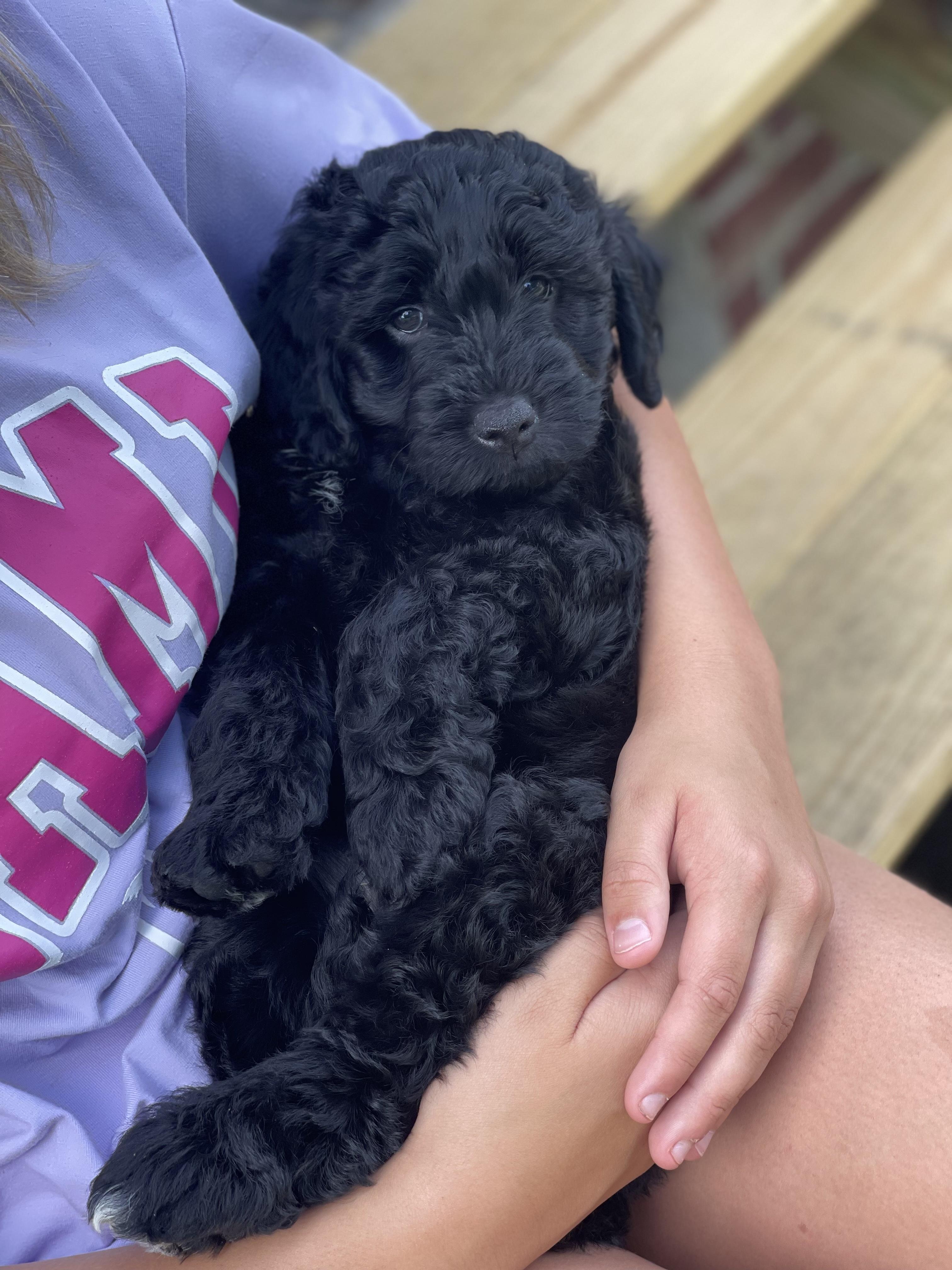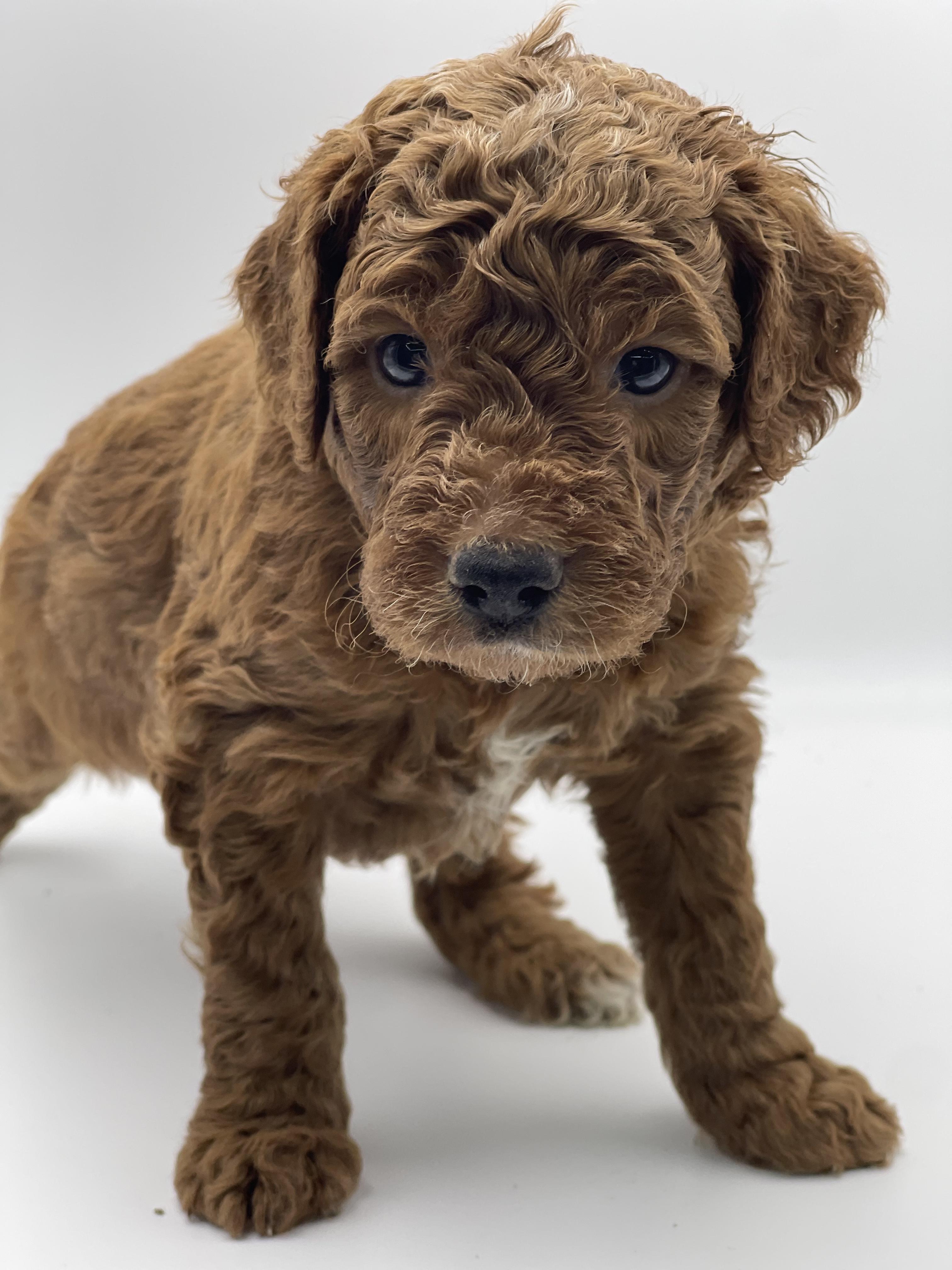 Our Double Doodle puppies include phantom, golden, cafe au lait, brown, and black. Goldendoodle puppies include cream, chocolate, black, merle, and parti. Colors will vary depending on the parent dogs.