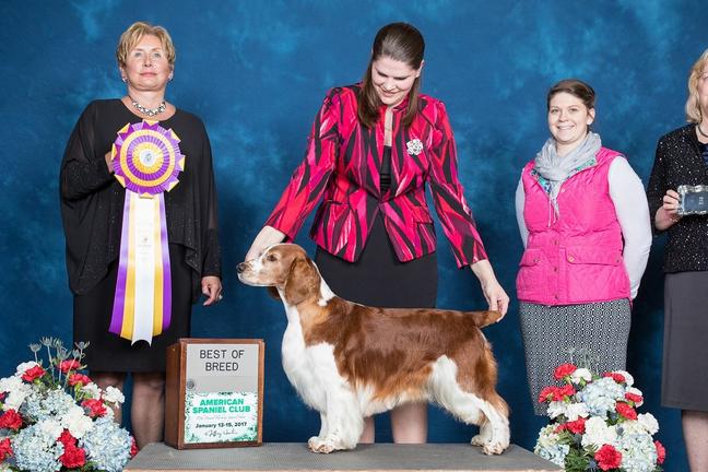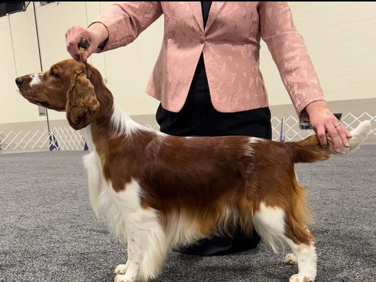 Darlene is a quiet and biddable girl. She has done well in the show ring, winning “Winners” at the Welsh Springer Spaniel National Specialty. She has normal OFA hip and elbow tests.