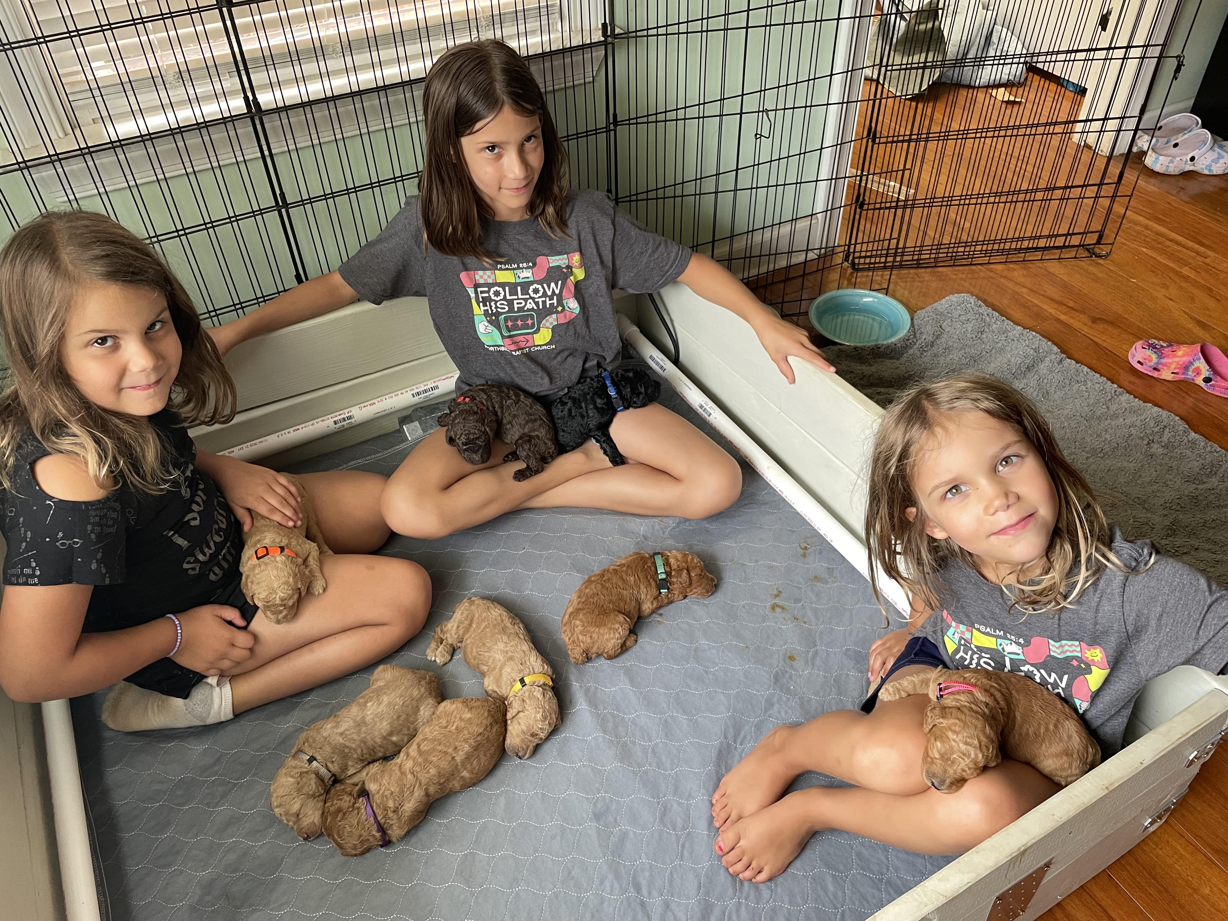 Our puppies include apricot, black, brown, cream, and red. Colors will vary depending on the parent dogs.
