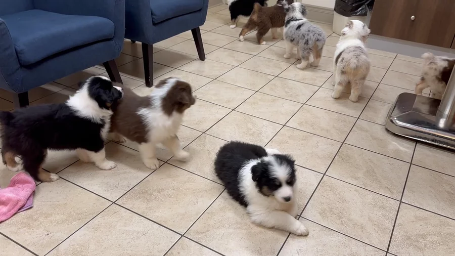 Our puppies include blue merle, red merle, red, and black. Colors will vary depending on the parent dogs.