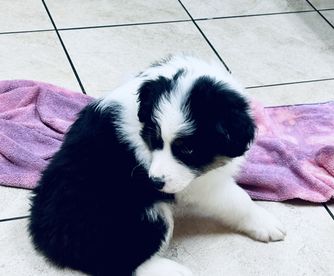 Brianna is a very loving and gentle black tri with a laid-back personality. She has a strong desire to please and has passed these traits to her puppies.