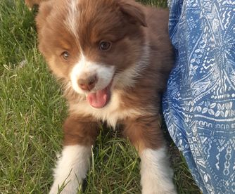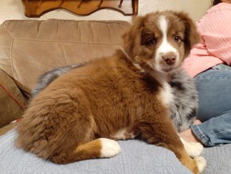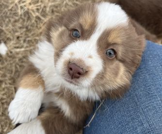 Our Australian Shepherd puppies include black, red merle, blue merle, and red. Miniature Australian Shepherd puppies include blue merle, red merle, red, and black. Colors will vary depending on the parent dogs.