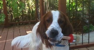Trooper is the 5th Irish Red and White Setter in US breed history to earn his AKC Master Hunter (MH) title. He is also a Grand Champion in the conformation ring, mostly with his very amature owner-handler.