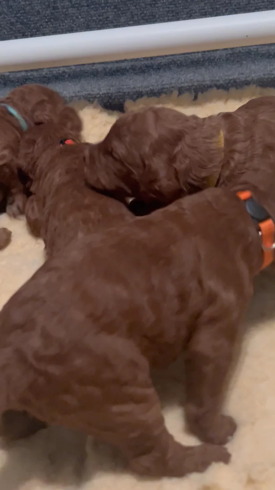 Our puppies include apricot and red. Colors will vary depending on the parent dogs.
