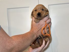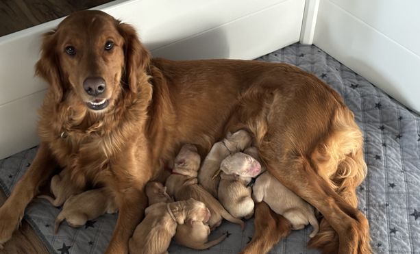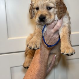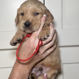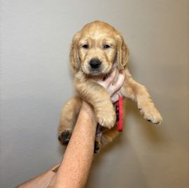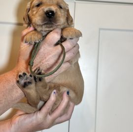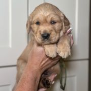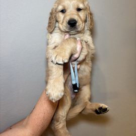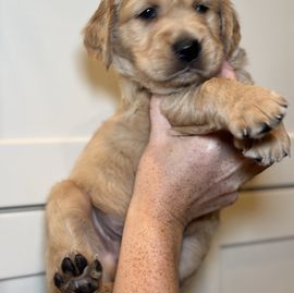 Winnie is a female Golden Retriever. Carefully selected as a great representative of her breed, Desi decided to make her part of their program. Desi has passed Good Dog’s screening process, which involved a review of their breeding practices, environment, and the mental and physical health of their dogs.